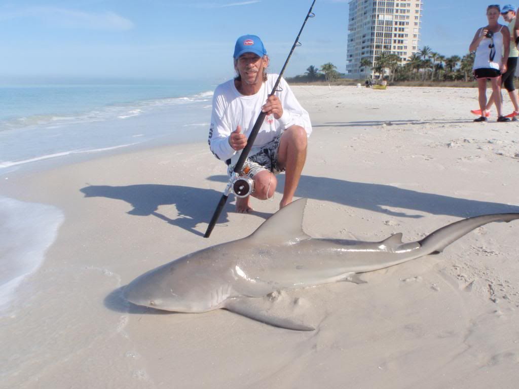 well today me and my dad and our buddy hit the beach to do a few hours of fishing in the morning before we had to be at a family bbq. we were gonna do a quick trip so took light gear. we had a 4/0w 2 6/0's and a 9/0. we put out a nice jack on the 9/0 a ladyfish on 6/0 mackeral on the 4/0w and another jack on other 6/0. 4/0w gets hit first of course but somehow cut us off. we are thinking the rock ledge that runs offshore here in Naples. later on my dad got a nice run on his 6/0 on a fresh ladyfish and after bout 15 min we had a 5' 10" bull on the beach and was released quick and swam off perfect. as we waited for another rod to go off we noticed the seagulls eating at some garbage that someone left from the night before which was mcdonalds bags with other trash. the part that sucked most was that in mix of trash there was 2 really heavy shark leaders with hooks so it was deff shark fishermen. hope this mess was on accident because thats the thing that causes ppl not to want us fishing on the beach. we cleaned up that and shortly after got another run on the 4/0w and after bout 25 min had another bull that was 5' 9" but was way fatter than the other fish.it was released with no hooks and swam off great. all in all it was a fun day. i will post some pictures of the bull sharks in the morning when i find camera cord lol