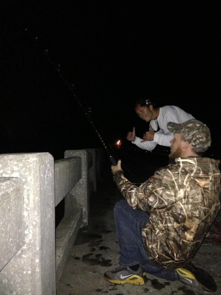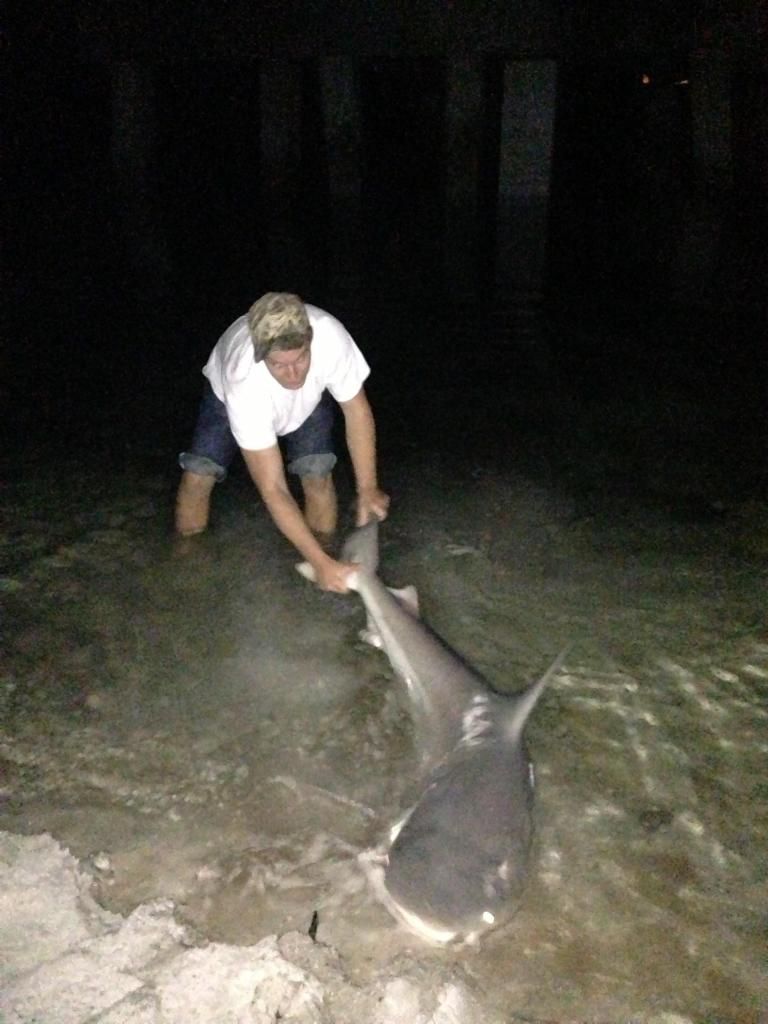 Hit longboat bridge again tonight. My buddy Michael got smoked on his 6/0 by a nice sandbar within 30 minutes. Long fight but we landed it! About an hour after releasing the first shark, my buddy josh finally managed to get a hook in the shark that kept playing with his bait. Didn't take much line off of his 12/0 haha...10 minutes after setting hook we had the fish landed another good sized sandbar. Tide was going slack so we packed up and left, going back at it tomorrow night!