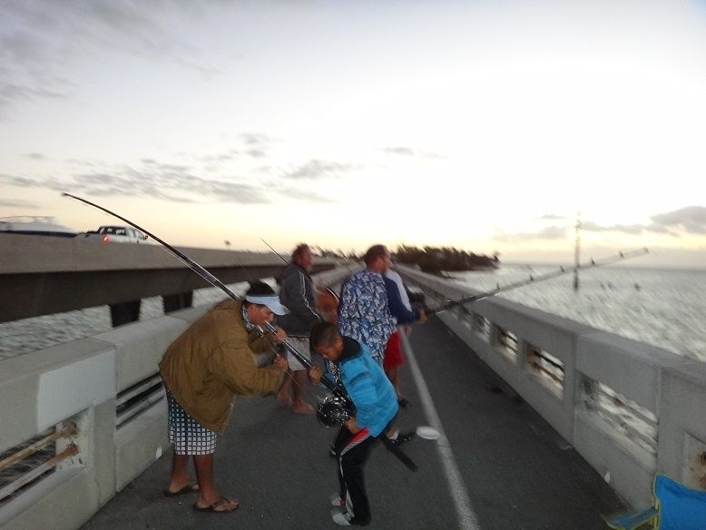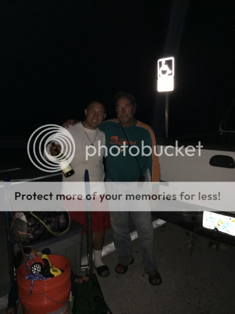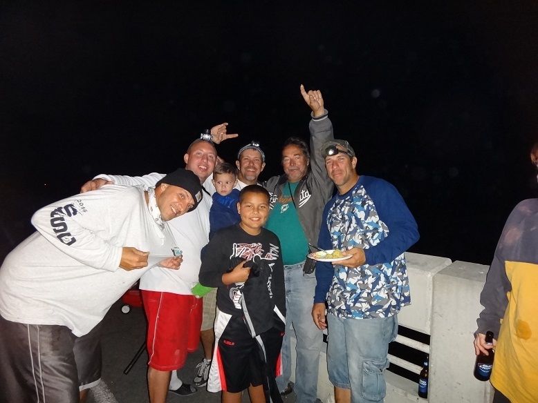 I Had a good time with friends on Long Key bridge last weekend.We didn't have the big turnout that we've had in previous years but those that attended to commemorate Rene de Dios enjoyed the comarraderie and shared old stories that keep the memory alive of one of the best land-based shark fishermen to ever fish LONG KEY BRIDGE.We caught 4 Nurse sharks and the big sharks did not make an appearance but Shannon lost a approx 7 foot lemon shark while walking it down the seawall and Billy had an approx 6 foot blacktip get wrapped around a lobster trap .Fishing on the Key West side of the bridge were Luis Iglesias and Jd Hammer's brother Jerry and son Jeramy.Jerry won the Biggest Snapper Category with a 17 inch Mutton Snapper.A big heartfelt thanks to all those who made the effort and joined us.Thank you.