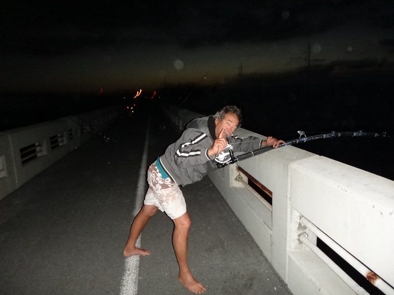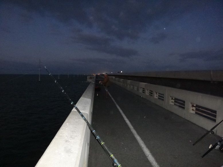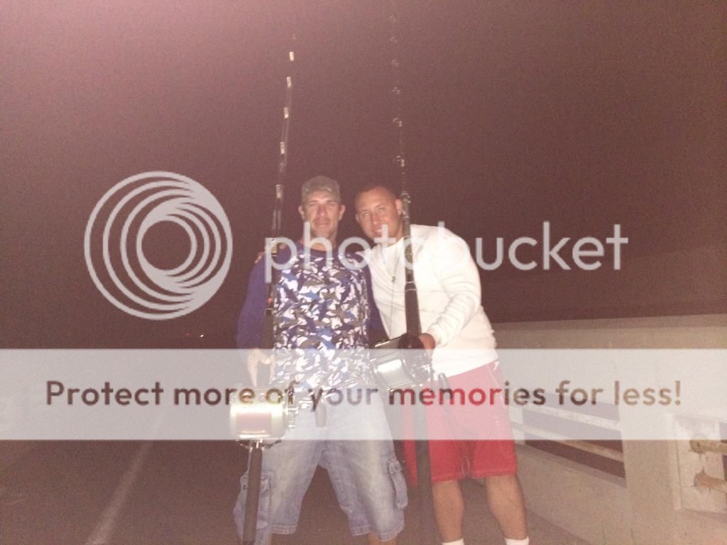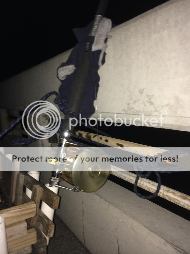 Shark caught on the buoy had to wait for the tide to change so we could bring it in!! Had to tie the rod up to the bridge so it wouldnt go swimming!!!