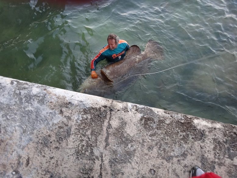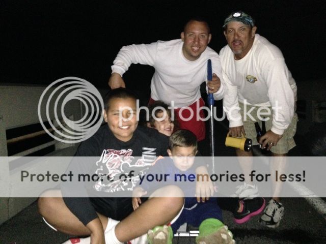 The tournament was a great time with Friends and great food and drinks. Will was grilling up the king fish and making ceviche. The food was excellent. the shark bite turned on about two in the morning with Shannon hooking several large sharks. But with no shark brought in. then Billy hooked up on a couple of shark. One of his sharks got caught on a trap and he could not bring him in. The tide had changed and I had left my big amber jack head out against the tide. the tide was going under the bridge. I got hit and under the bridge he went. I held on to my 16:0 with 200 lb test and pulled him up. We passed him under and walked him down to the sea wall. T hanks to mark and Will for there help. Here are some pics.
