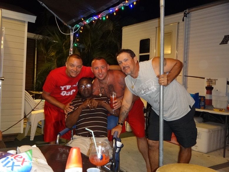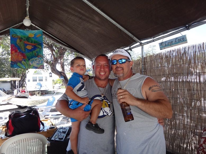 back at my place in Key Largo Shannon,his son Dante and I pose for a picture