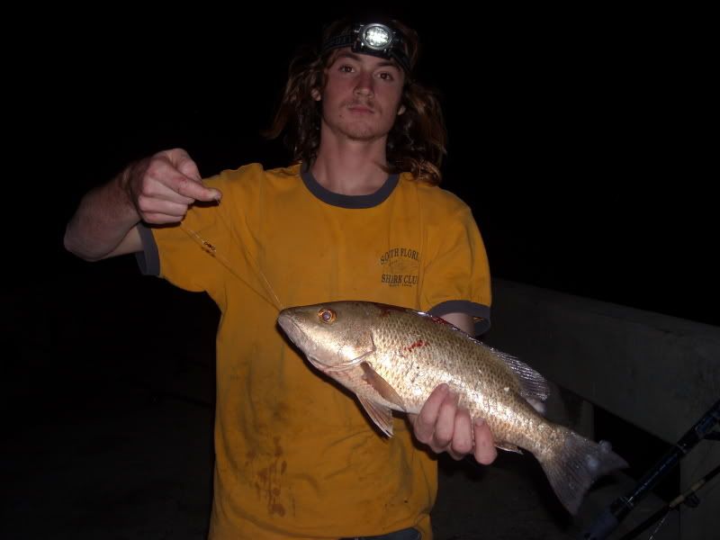 well i met up with my freind achot who came down from miami to the keys for the flea market. and he also brought his gear and some bait, so later on around 5:30 we meet up on one of the keys bridges. we started off snapper fishing, and i end up getting a nice black grouper, next bait down a tarpon inhales my bait but no hookup. then achot puts a bait down hooks up to a nice tarpon that does some veary nice headshakes and spits hook. later on that night we start putting a few baits out. i ended up catching two nurses, and this bull. and achot hooked up but the hook pulled. THANKS FOR THE BAIT AND ALL THE HELP ACHOT.