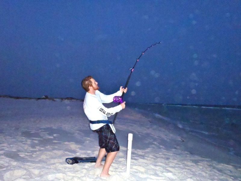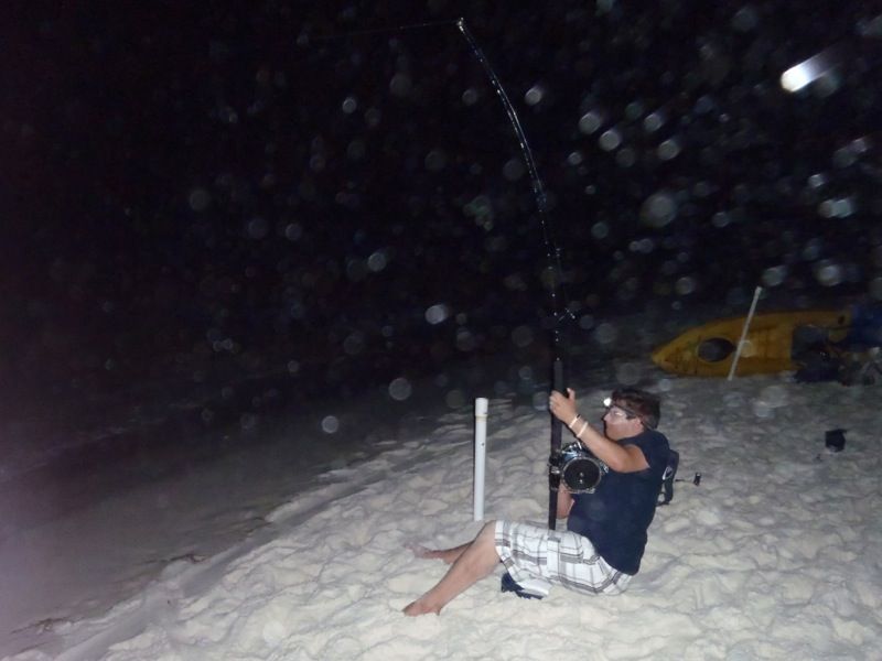 Again, a lot of little runs until about Midnight. Troy and his daughter stopped by and we chatted a bit when the 50W took off again, was a good run and went to tighten up the circle and didn't catch. Bummer. Reeled up and Troy gave me some pointers on my rigs, hopefully the changes will produce more sharks.