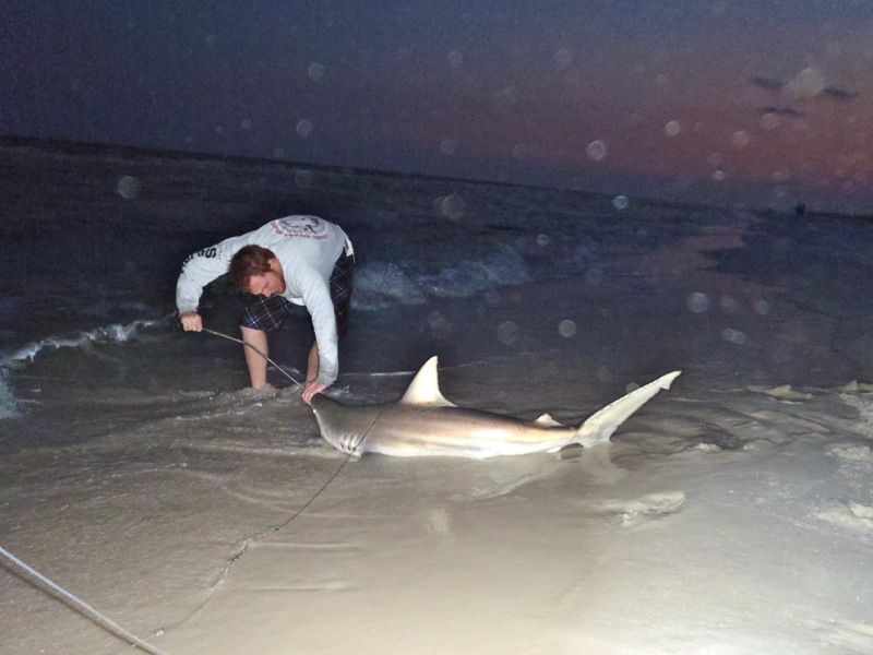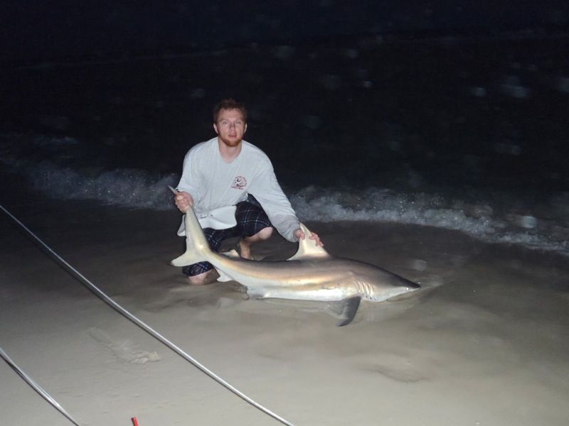 We slept the majority of the following day. Got some fresh bait and hit the beach. Surf was much more agreeable Saturday night. Got the rods out, same story. A run 10 minutes after the bait was dropped. Made short work of another blacktip, one of the few daytime sharks I've gotten.