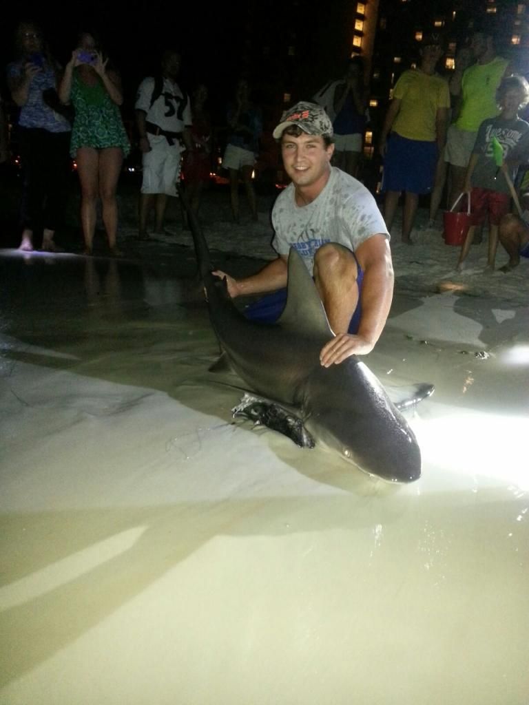 Not long after the king I got into some bonita and quickly caught two. Now I was set on bait. That night about 30 minutes after dark I ran out my first line and caught a bull around 6 foot. I was shocked at the amount of people that literally seemed to appear from the dark. I answered a lot of question about what it was I was doing and all the reception I received was good. Most people were excited to see there first shark in person. The next night I went out and found a quite spot on the beach and set my line out a little before dark. I was rewarded with this little 5 foot class Blacktip. I will say I will never complain about catching sharks, but when I get one those smaller BTs on the 14/0 they absolutely beat me up on the sand. They are still greener than ever. All in all it was a great trip.