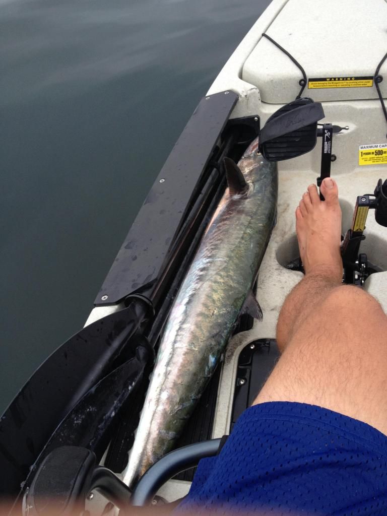 I got to go to Destin for two days and do a little fishing while I was there. It was a little difficult with the crowds but I ended up setting all my baits at dark or right before dark when everyone was out of the water. The first full day there I took out the kayak and trolled around for about an hour before I hooked up with a nice 40 inch king.