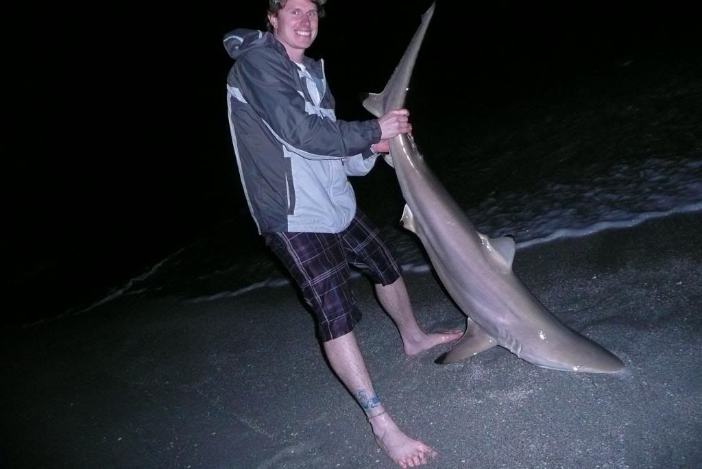 baits are out and we wait alecs 12/0 goes off and gets stuck on a crab trap. so i paddle out and release the shark from it and hes back to fighting it when the hook pulls!