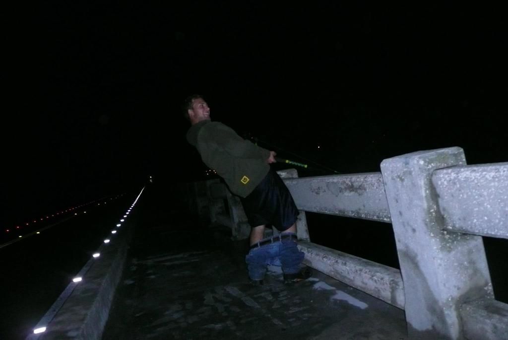 and then headed north and shark fished. our plan was to fish as much as possible and get a bait in the water while the storm was still brewing. it got real bad out so we hung out in the car to wait it out. i couldnt wait anymore so i grabbed my rod and a ladyfish and went under the bridge to fish