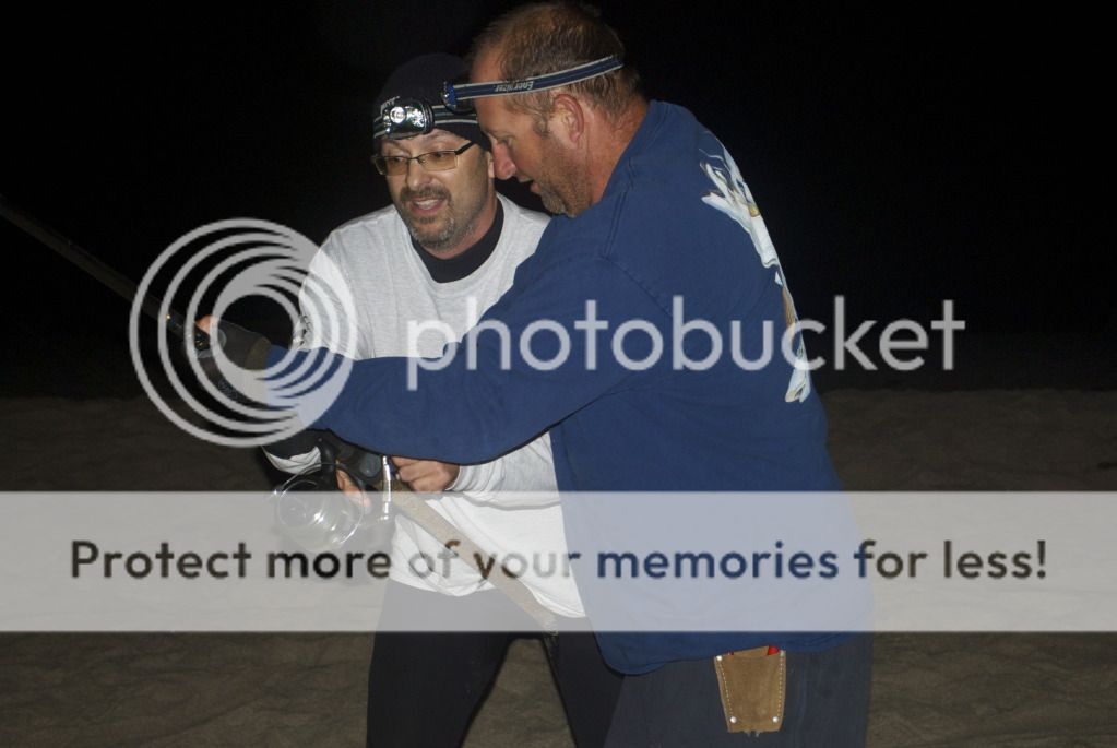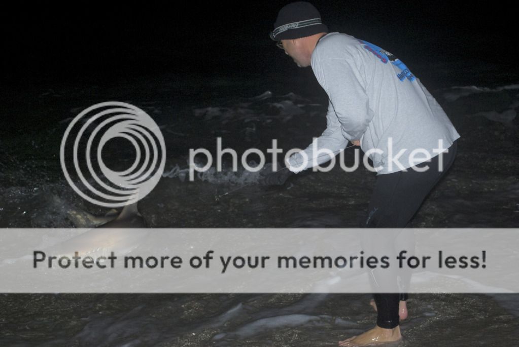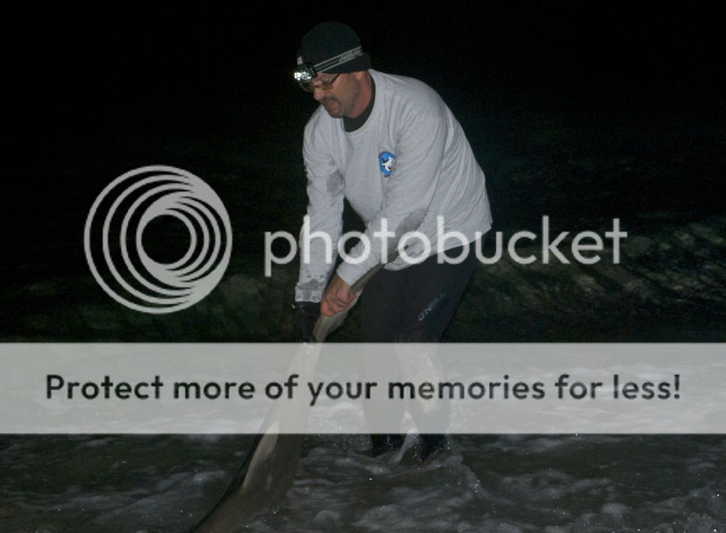 3 other rods were soaking while i rigged up. I casted out another piece of cuda and I was on in 2 min. My friends were pissed to say the least. The shark was almost double the size of the 1st one and it forced me to sit in the sand with my spinning gear for a few seconds after about the 4th time it took drag and was jumping. Unfortunately, they didn't take any photos of the second shark. They were to busy moving their rods to the other side of me looking for the hot bite. I rigged up, casted a bait and I was cut off within 5 min. while my buddies sat around and watched their rods. Greg had a run but the shark did not commit. It was a great way to start the season with a great group of guys.