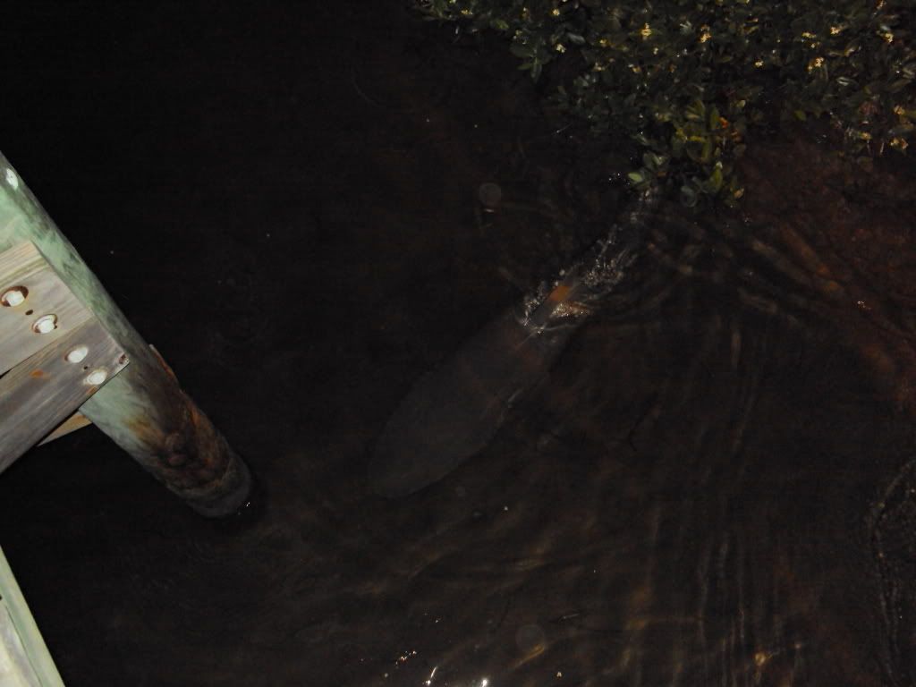 He was a fat lemon and every bit of 8 ft. Walked him to the shallows and as I was grabbing the leader he started thrashing and swimming around in 3 inches of water and tried to bite me twice. So I then decided he could keep the 6ft leader if he wanted it that bad and broke him off. He swam around the shallows for a few minutes in between the pilings and swam out just fine.