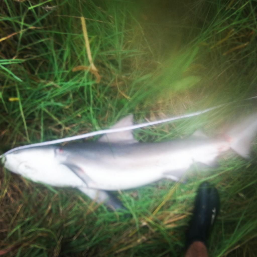 I had baits out for less than an hour before the free-floated catfish fillet took off with a screaming run. I free spool the reel and let it have the bait while I clear my other rod out of the way. Bail arm goes over and the hookup is strong. A good 10 minutes later I have this 120cm bully yak side going ballistic. I get a tail rope on and tow it to shore and off with the tail to bleed it out away from the water. It's been a while since I've had a feed of flake. (sorry for the blurry photos, I had water on the lense and didn't realise until later).
