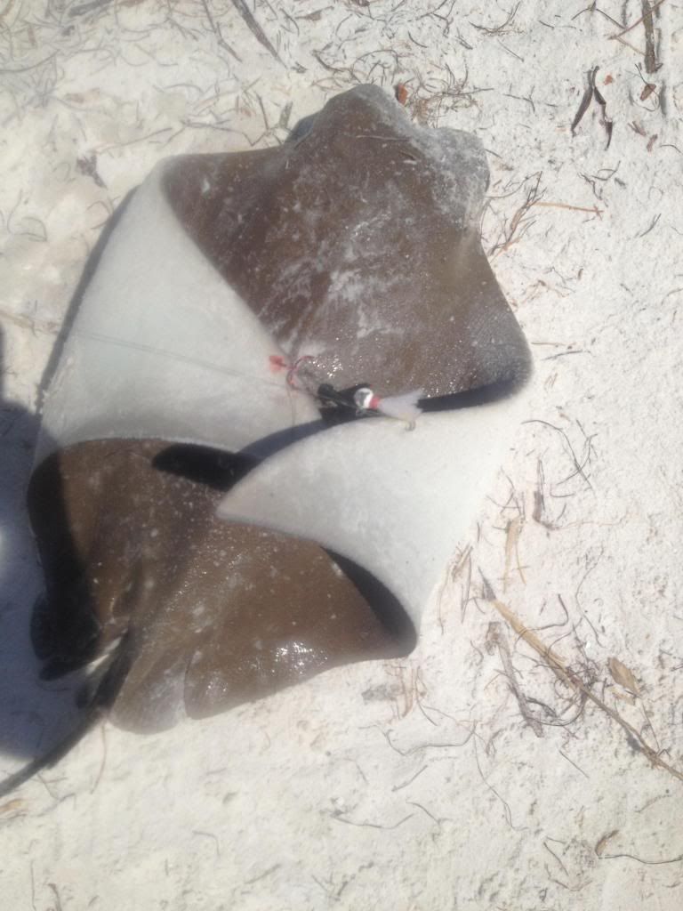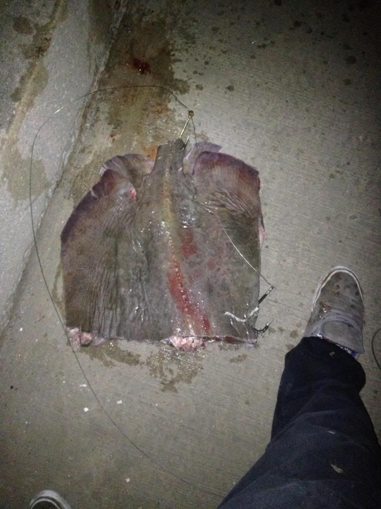 i get a day off with my buddy and we hit the bridge to catch bait. after i caught some macks on bucktails and put one out on the squall. it starts ringing a few minutes after slack hits and i bring in a 70 lb ray after a good tug of war to try and get it off the bottom.