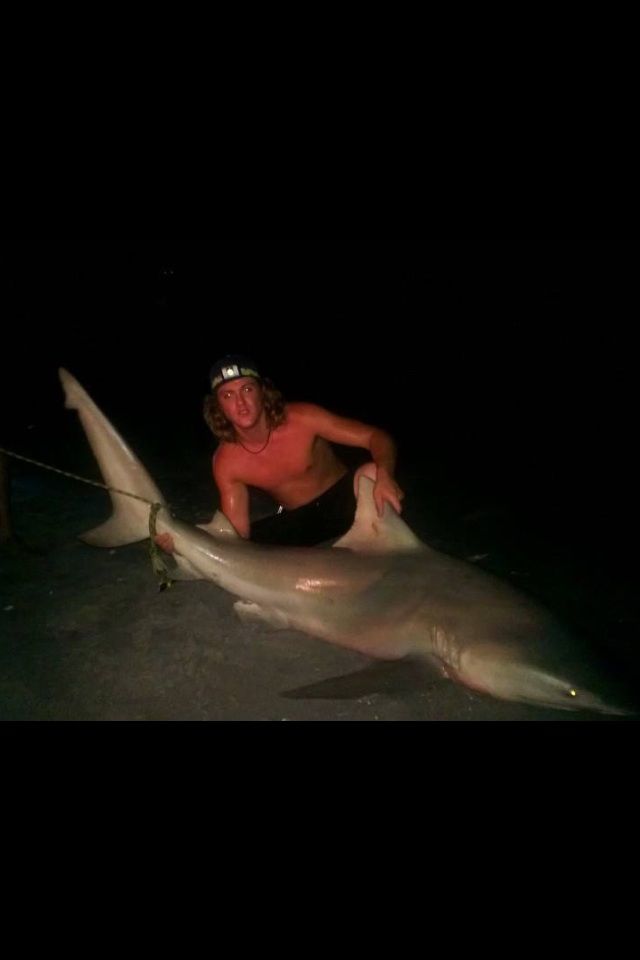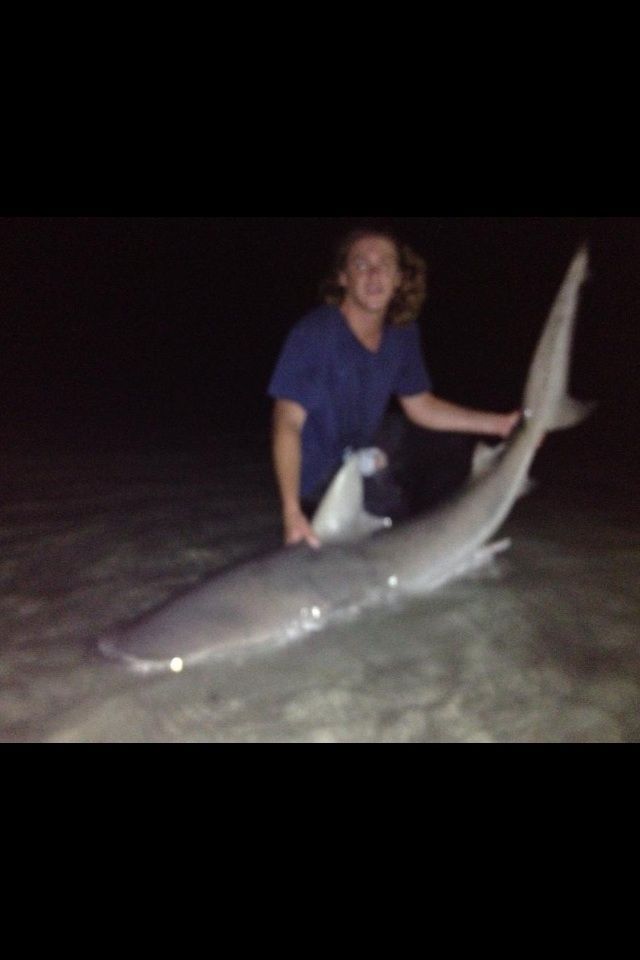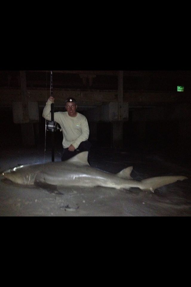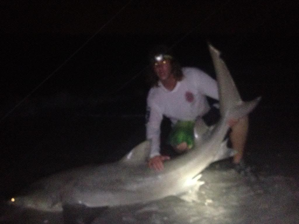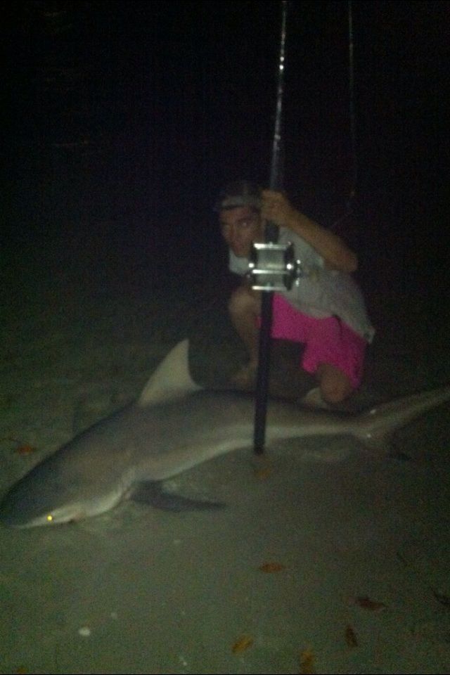 we all fished the beach for an entire night. droppped the 14/0 far and the 12 and the 9 short after two fish lost my 14/0 gets hit solid and i do the running man and get yanked around and drag starts ripping out. after a good fight i bring in a decent bull hooked in the dorsal fin. definitely thought it was twice the size.