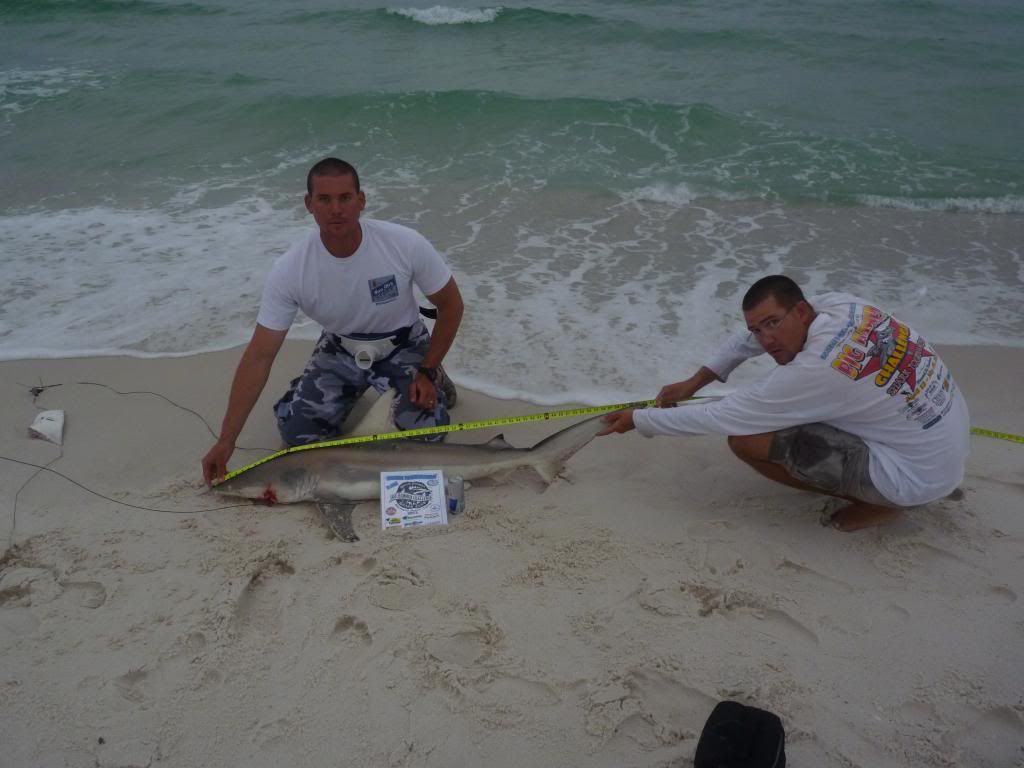 i was trolling a big hardtail with a skirt for wahoo or sails and he hit it. not sure if its even a black tip really. by external features i can say with 80% certainty that it is. but its teeth were different than any black tip i've caught and its dorsal was rounded. here's a couple more pics.
