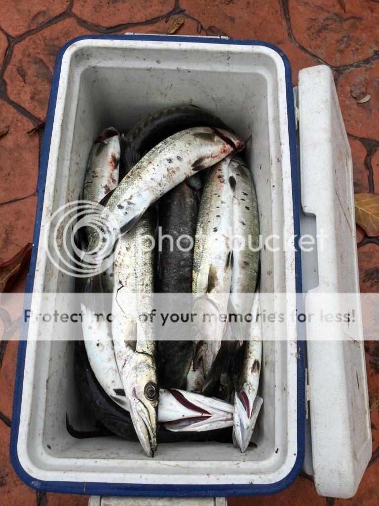 The next morning Jose had to work so we couldnt fish without the whole team together so Ray and I decided we would go to one of his spots and catch some fresh bait and we nailed it. Caught 20+ 2ft cudas the perfect bite size morsels for the monster. And after that we stopped one more time at the local marina and scored 4 fresh bonitos.... We were good on bait