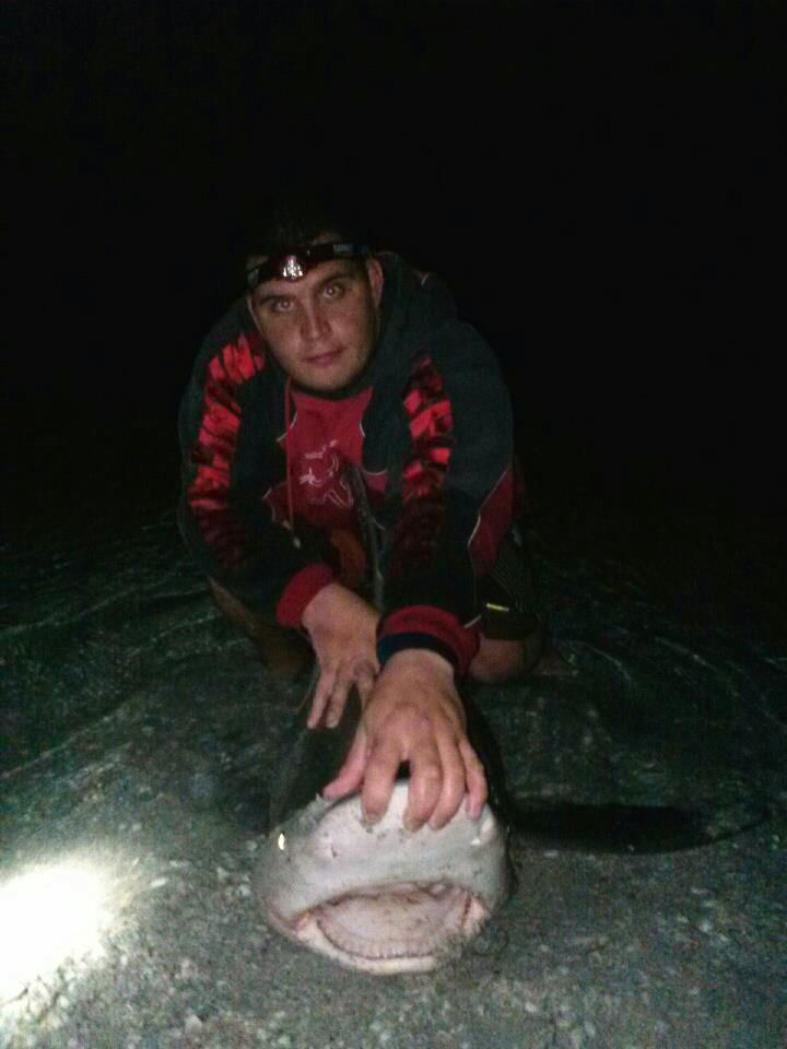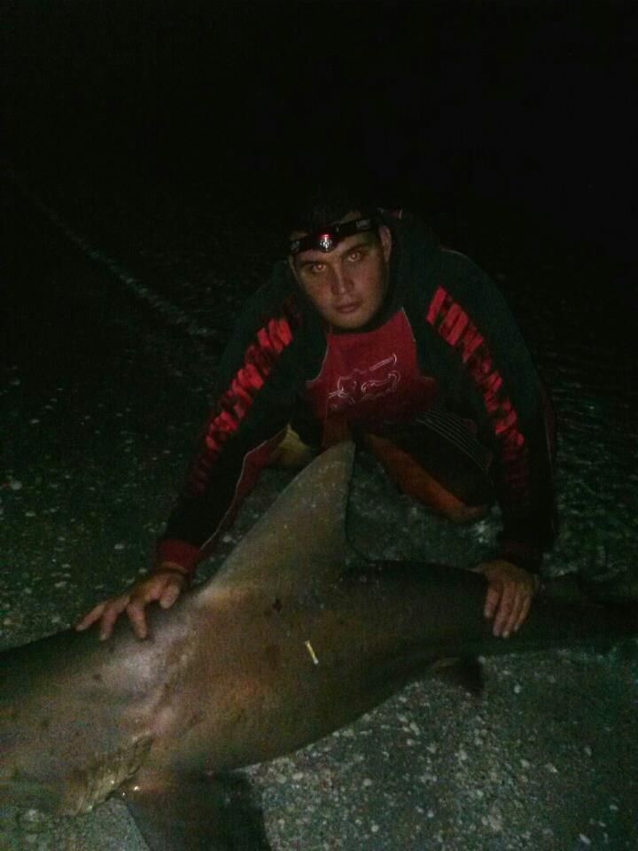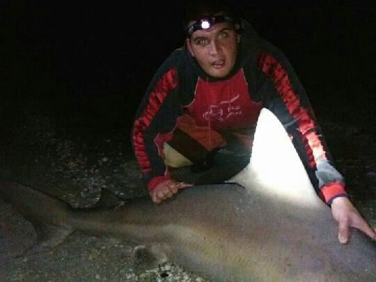 We went out last night and headed to the pass we had live jack for bait and ended up hooking 7 sharks landing 4 had a 5th 10yards out and pulled hook. We tagged 3 out of the 4 sharks. I started the night out with a 6' 7" then our friend got a foul hooked 6' even later on a 6' 5" on our friends 6/0 I ended the night with a 6' 10".
