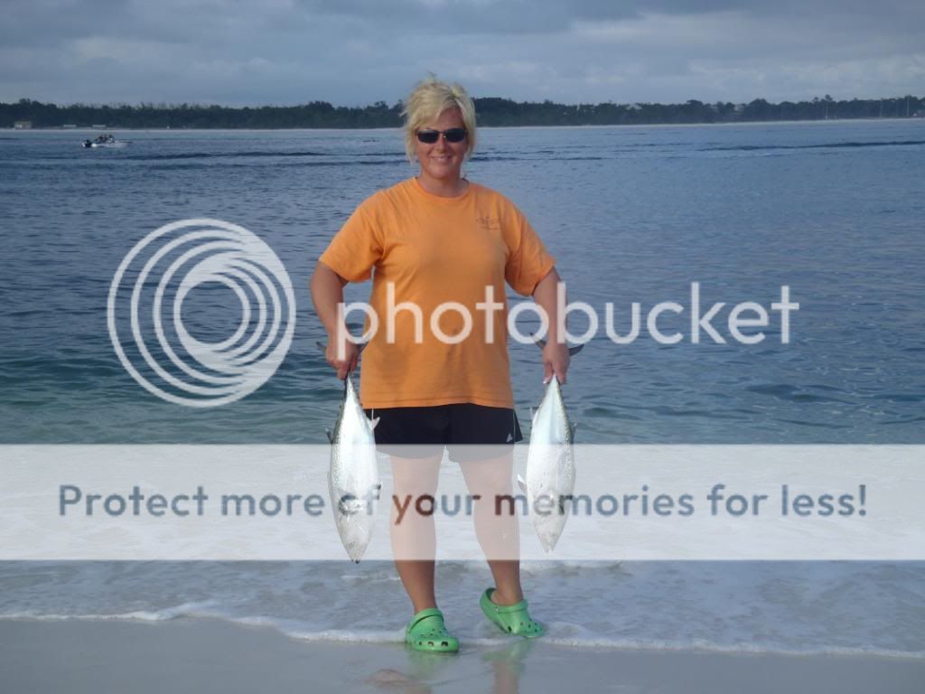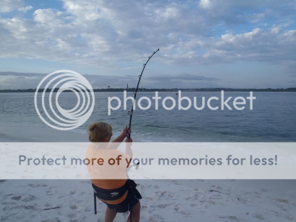 As we sit around talking about the live mullet being out all day and not getting hit....maybe the crabs have eating them off the hook? Just at that moment her reel takes off....I mean screaming!!! The rod bows on the hook set and for whatever reason the hook doesn't set