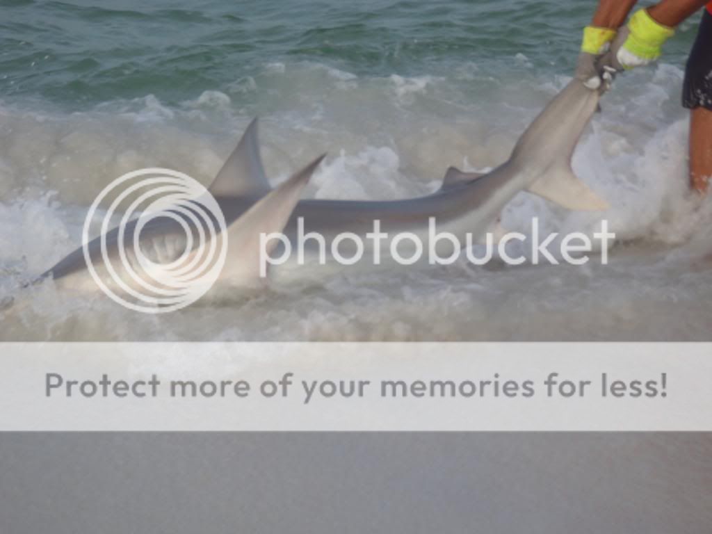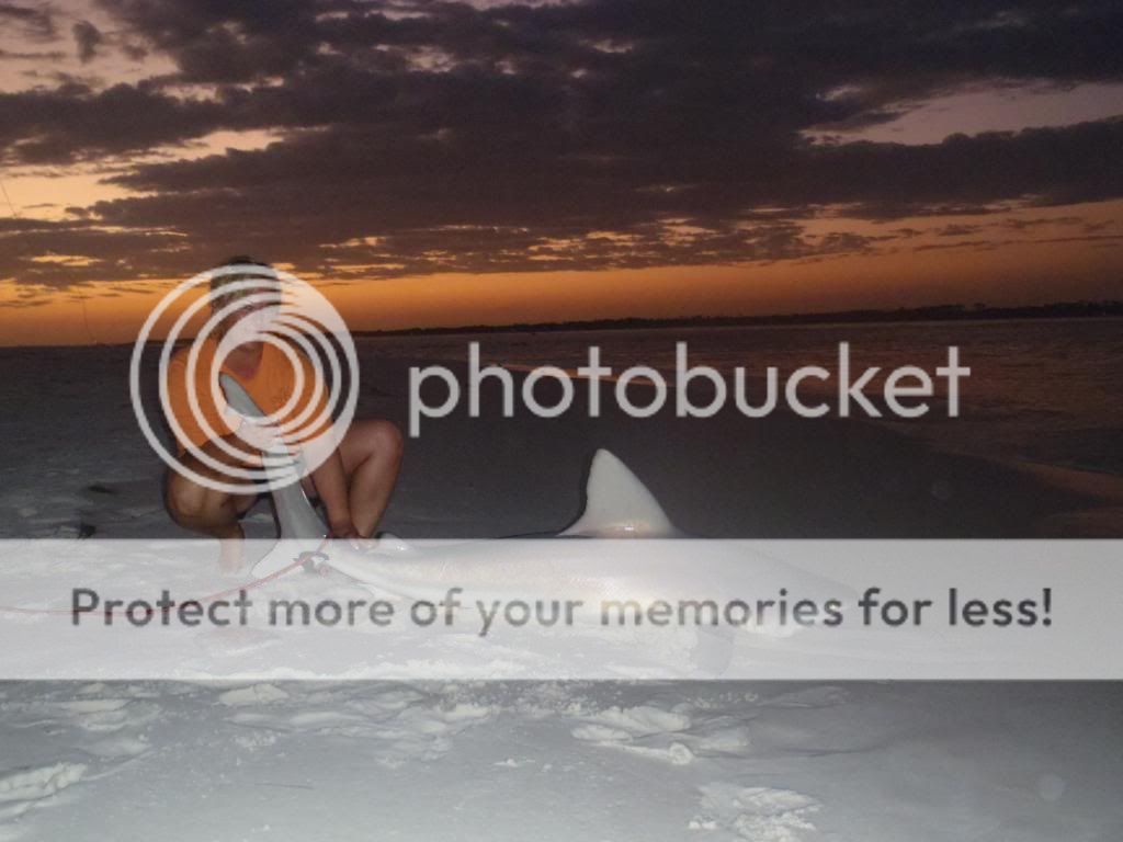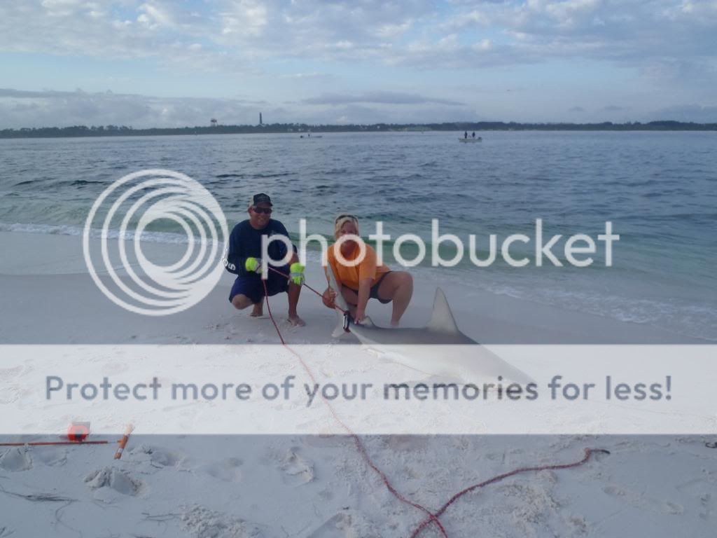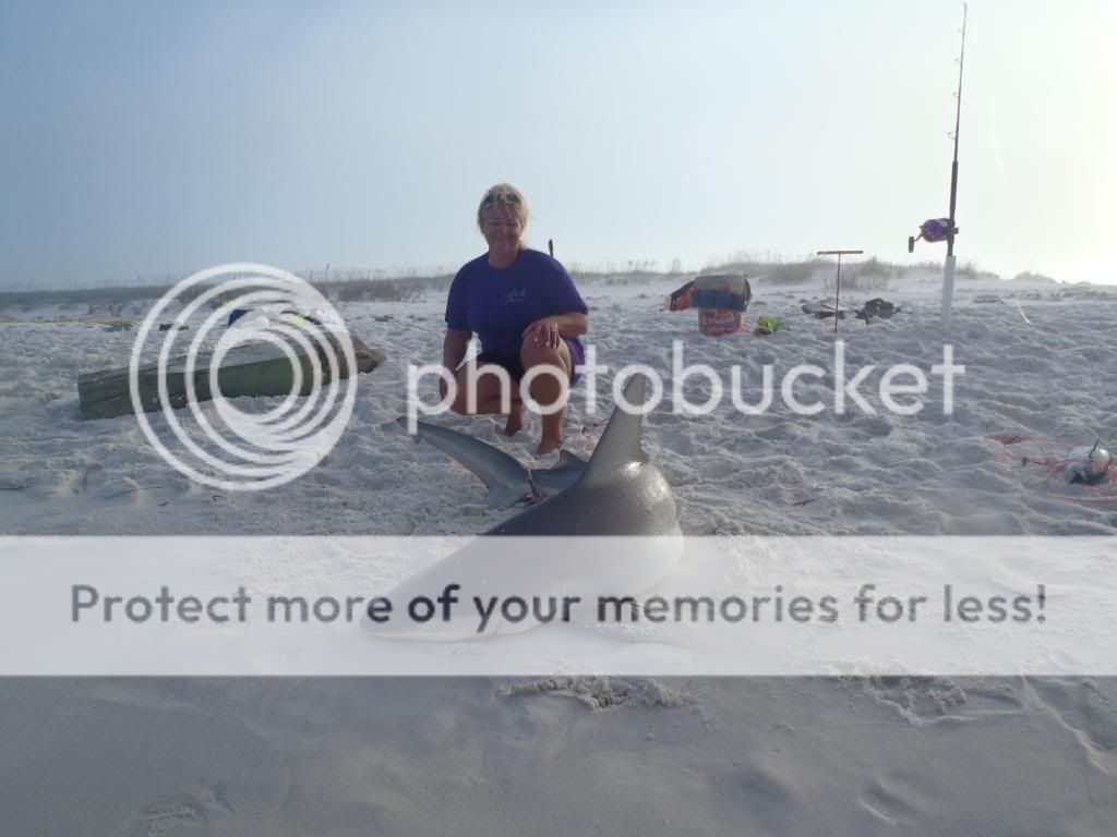Well they are not out of the parking lot good and my 80w clicks a few small times and slacks up. We wait and finally get the hook home. Tara has been very patient and I figured it was her turn to put a shark on the sand.