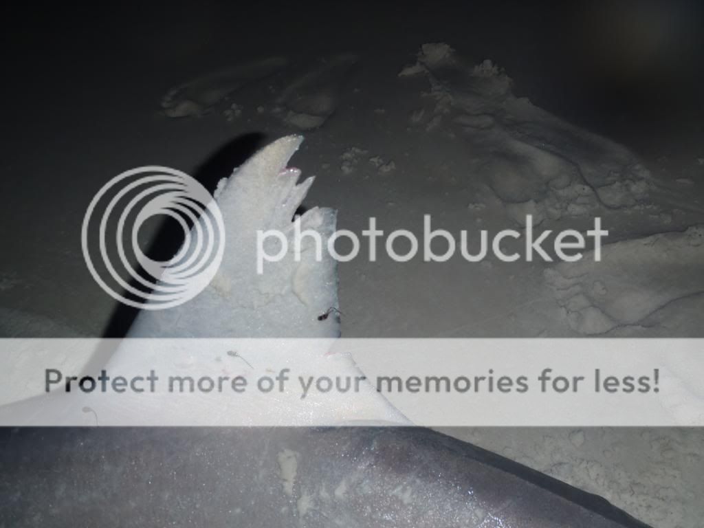 Because for the last month we have had sharks have their way with us driving us crazy and making us want to fish more and harder! Because I hate the cold and more than the cold I hate the COLD WIND! We have fished several nights below 40 degrees and many nights in the low 50s with the ever blowing wind of the last couple of months. We have had a few nice temperature days but the gulf was crashing hard on those days or it rained or the fog was so thick it might as well been raining. Oh I don't want to forget the monster mosquitoes that come out on the warm days...I mean really is there ever a nice shark fishing trip???