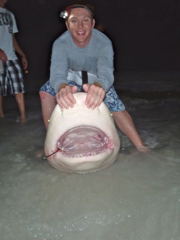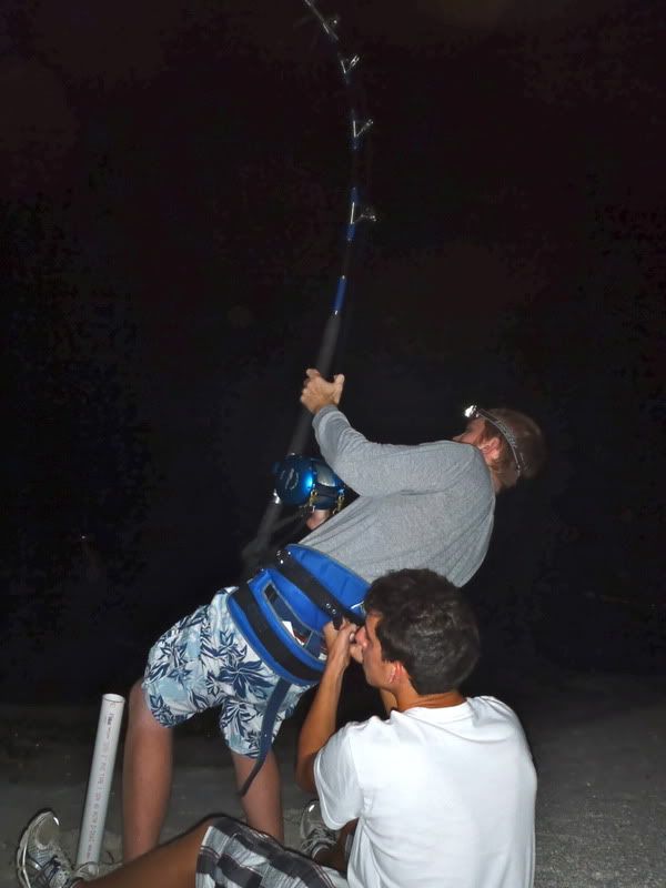 Finally got my first shark on the West Coast since my move. Went out with Trevor (Midnight Dreamin) and his friend Nick. We spent the morning getting rays and got a nice 25 pound mudray. We quartered it up and put out 3 rods. 14/0 and 12/0 deep and the 80W short. 5 hours later, the 80W got picked up and took off like a bat out of hell. Let him eat and threw it to strike to set the circle. Rod about got yanked into the water (need to go less drag next time). Put the reel in low gear and yanked him.