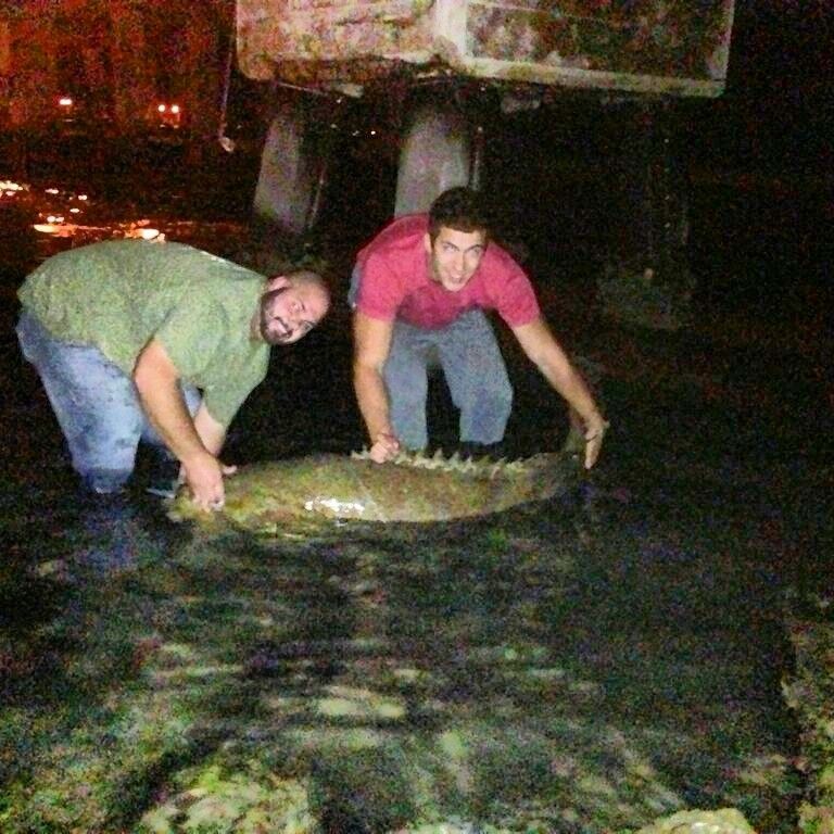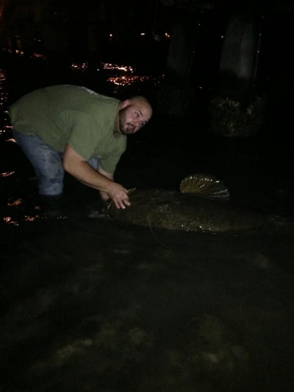 All in all the fish was over 6' I didnt have a chance to measure him, you can see the girth on his head and his body in the pics. He was easily a 250 lb fish. I haven't seen a belly like that on a fish in a while!