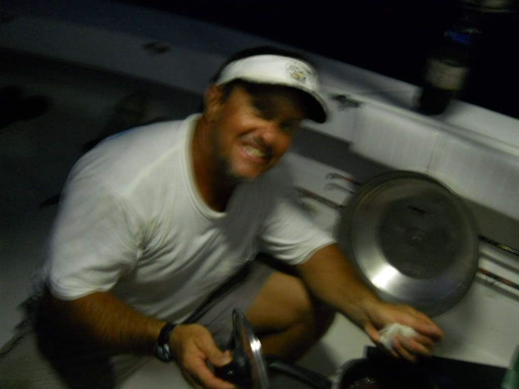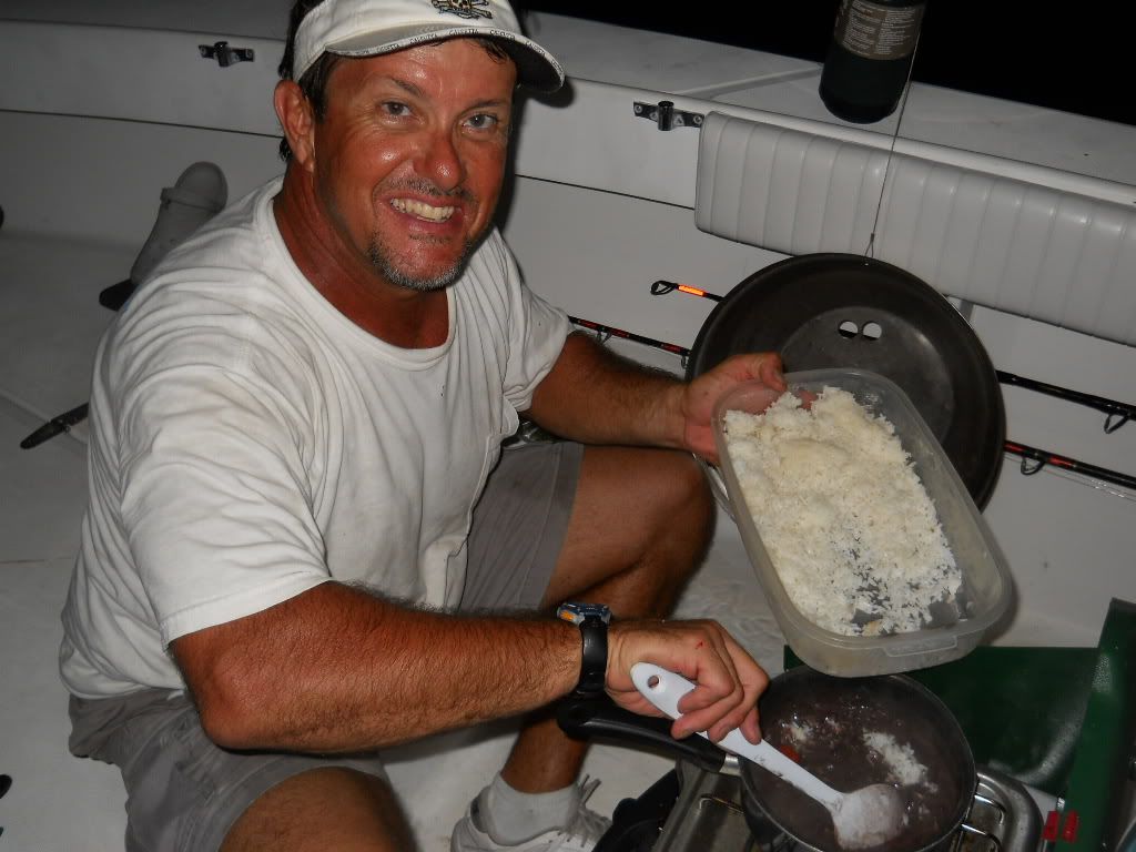 As dark approached, William punched in the co-ordinates to his top secret sharking heaven. We started getting our sharking rods and gear ready and began deploying bait. By this time we were starving and Master Chef William started dinner. This included steak and pialya. We ate like kings and the badly needed food hit the spot. Thanks William for all of your cooking it was first class and oh so very good. Even Joey who doesn’t like anything, tried some new things and actually liked them.