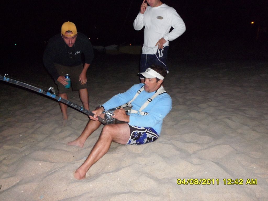 I want everybody to know i was next to Shannon last year when he hooked a monster that spooled his 14/0 and 12/0, but this shark was ready to spool three 16/0s tonight, anybody who has met Will can easyly see he has alot of strength on him but this shark didnt let him even pick up the rod.... this was a true monster that i dont know how we were even going to bring him to the sand to take the pics