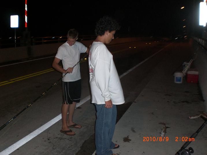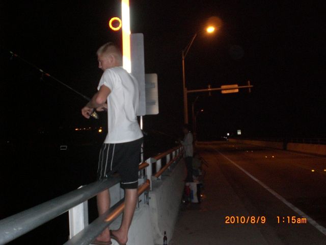 Mike and Mark try there luck on the bridge without any shark bites on this night