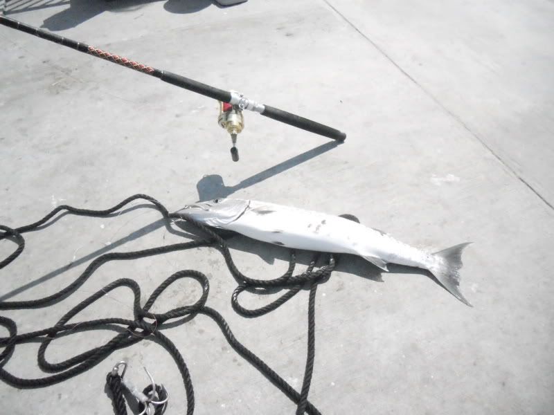 I cast netted all the live mullet I could use. Never put a live finger mullet on a brand new xwrap to keep the mullet alive,,Big mistake!! Left it hangin and went to catch cudas with my duel. Came back and my spinner was stripped to knot. As I got to the rod and pumped him in, it was a black tip.The big Hammer ate it. I lost my fourteen dollar plug.