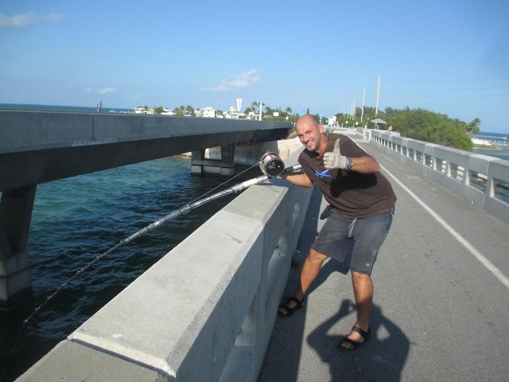 WENT TO LONG KEY WITH JOHNATHAN AGAIN. WE GOT BAIT AT THE BOAT DOCKS. THE FRONT WAS ON ITS WAY.WE GOT THERE ABOUT 1:00 PM. THE TIDE WAS GOING OUT WHEN WE GOT THERE. THE TIDE SLOWED AND JOHNATHAN PUT A TUNA HEAD OUT AND GOT SLAMMED. HE HAD A TWELVE OTT WITH 200 LB TEST. THE FISH SHOT UNDER THE BRIDGE. I SNAGGED HIS LINE ON THE OTHER SIDE . THE REST OF THE FIGHT WAS BARE HANDED. HE ALSO HOOKED A BIG SHARK BETWEEN THE BRIDGES THAT WENT TOWARDS THE GULF SIDE BUT WE COULD NOT GAIN ANY LINE AND IT PULLED THE HOOKS AFTER A WHILE RUBBING ON CONCRETE PILINGS. WE ALSO GOT SLAMMED BY A COLD FRONT AT ABOUT 2:00 IN THE MORNING. I WENT HOME SICK.