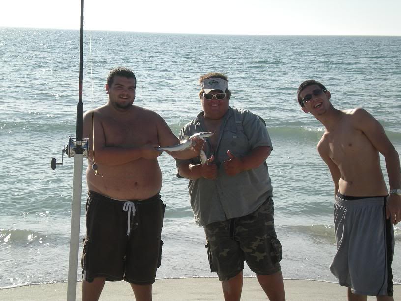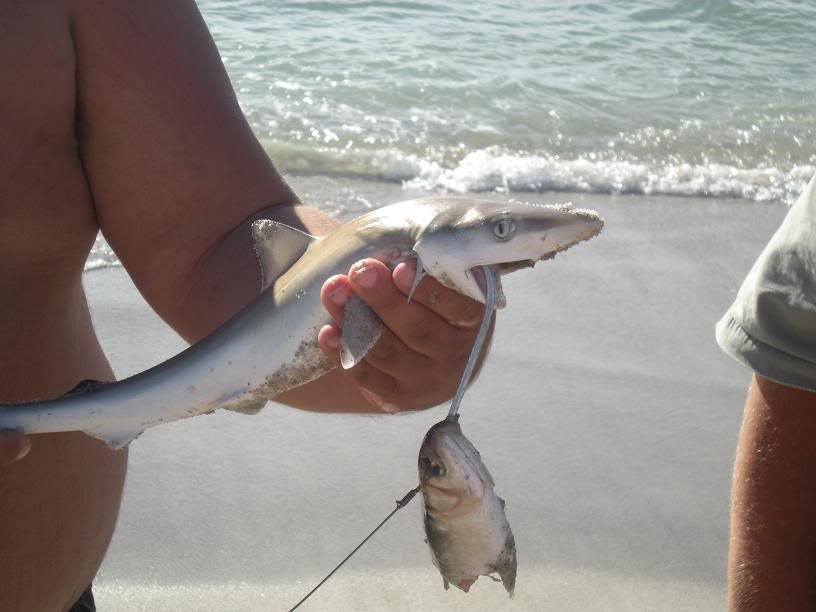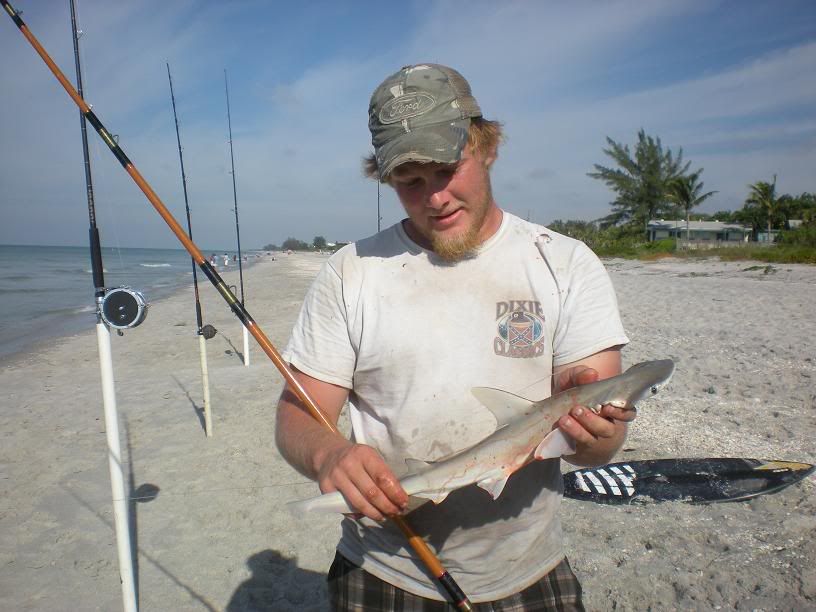 James#3 with a small shark caught on the surf rod