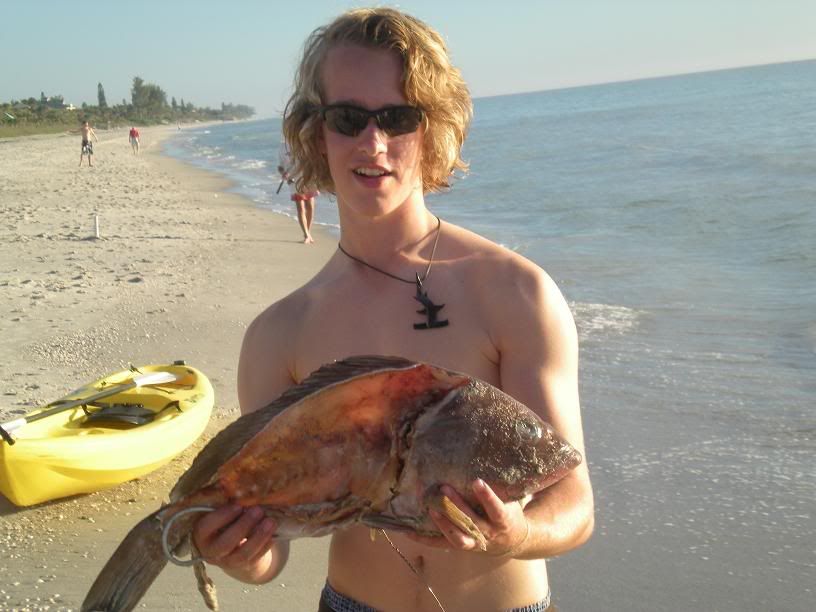 the funny thing bout the tiger is the night before we were sitting around the fire cooking hot dogs and james said "its weird a i had a dream and we were all doing this same thing" so i looked at him and said "did that dream include a tiger shark." and then later that day we got a tiger.