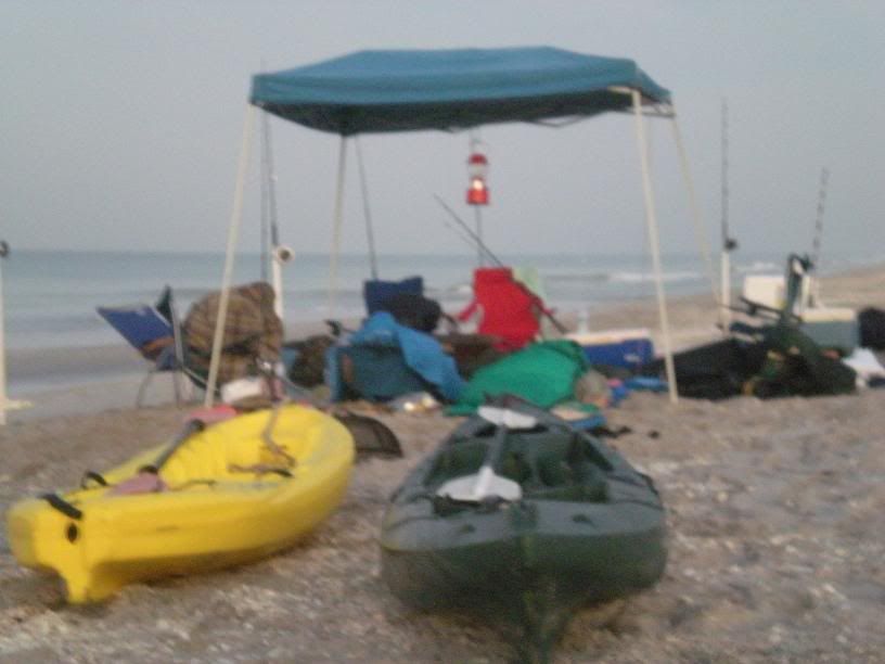 the big guns ready and in the background the energetic young anglers yaking out fresh baits day and night