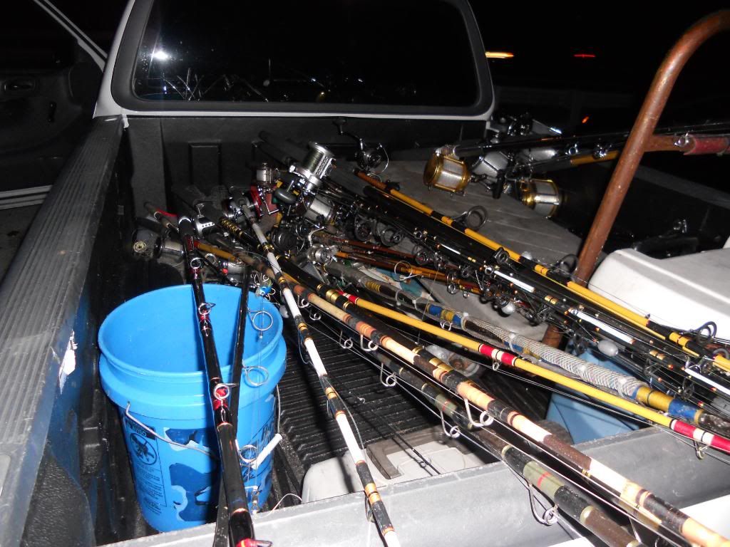 You will flip out on how many rods were in the back of J.D.'s truck and yes It was an awesome weekend for me as I caught 2 sharks...SWEET...LOL