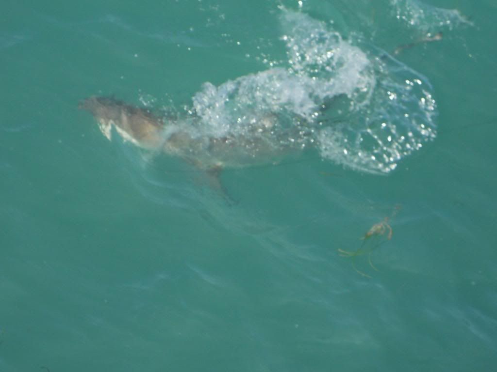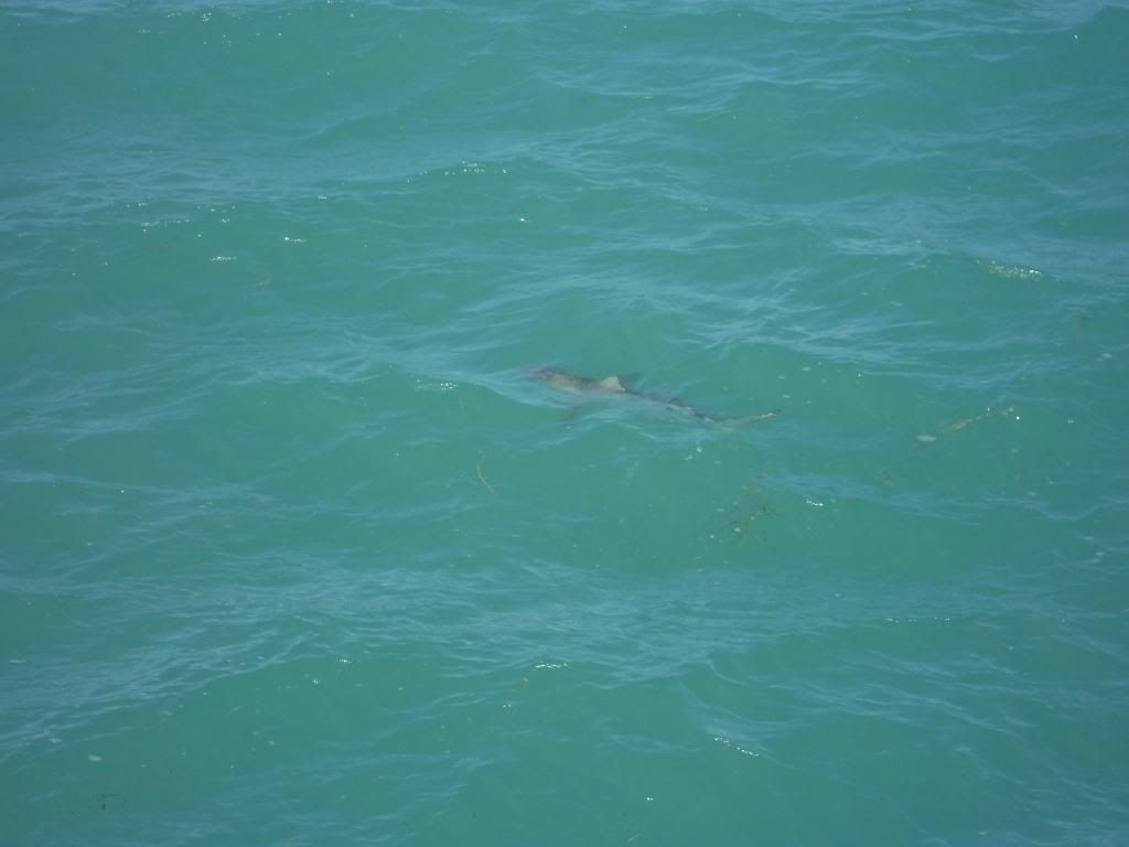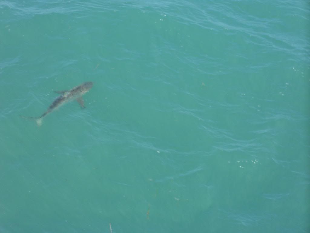 Kim caught two sharks and we lost many more. The pics are very good. The sharks are comming up to the top to eat the baits stright down. Also went to lakeworth and saw my partner. All twelve foot plus. He came to the pier twice.