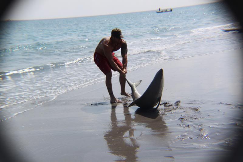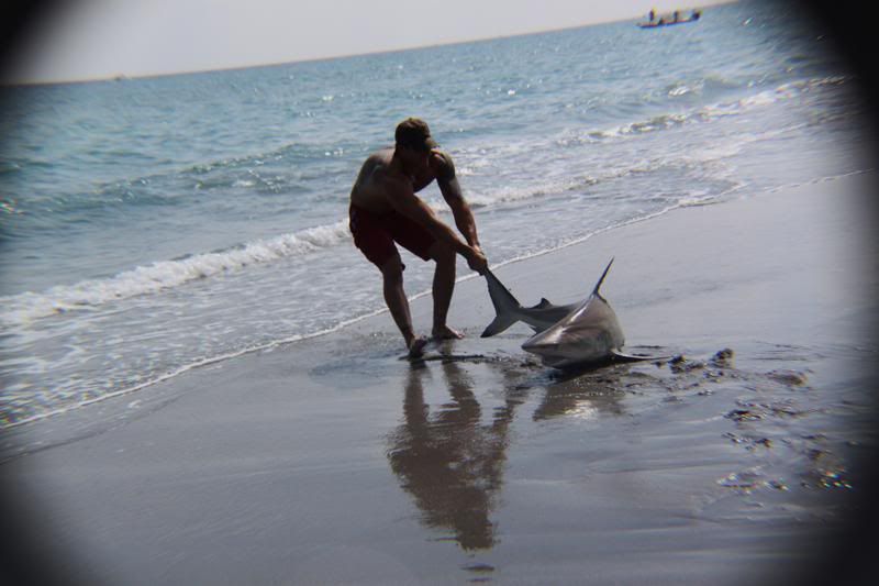 P.S. Judging by the general body shape (It's pretty chunky), and shape of the head, plus the coloration, it looks like a blacktip. Can't tell for sure without looking at the anal fins. The anal fins of spinners have black on them, for black tips they don't (go figure