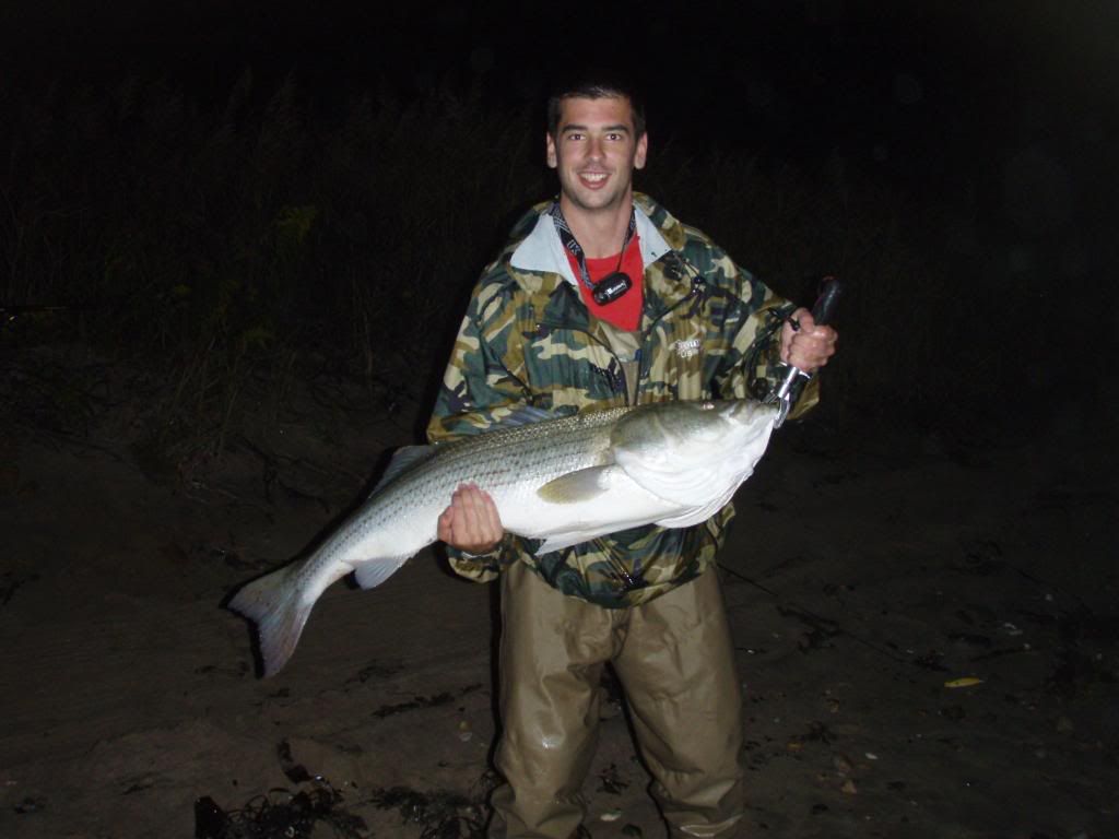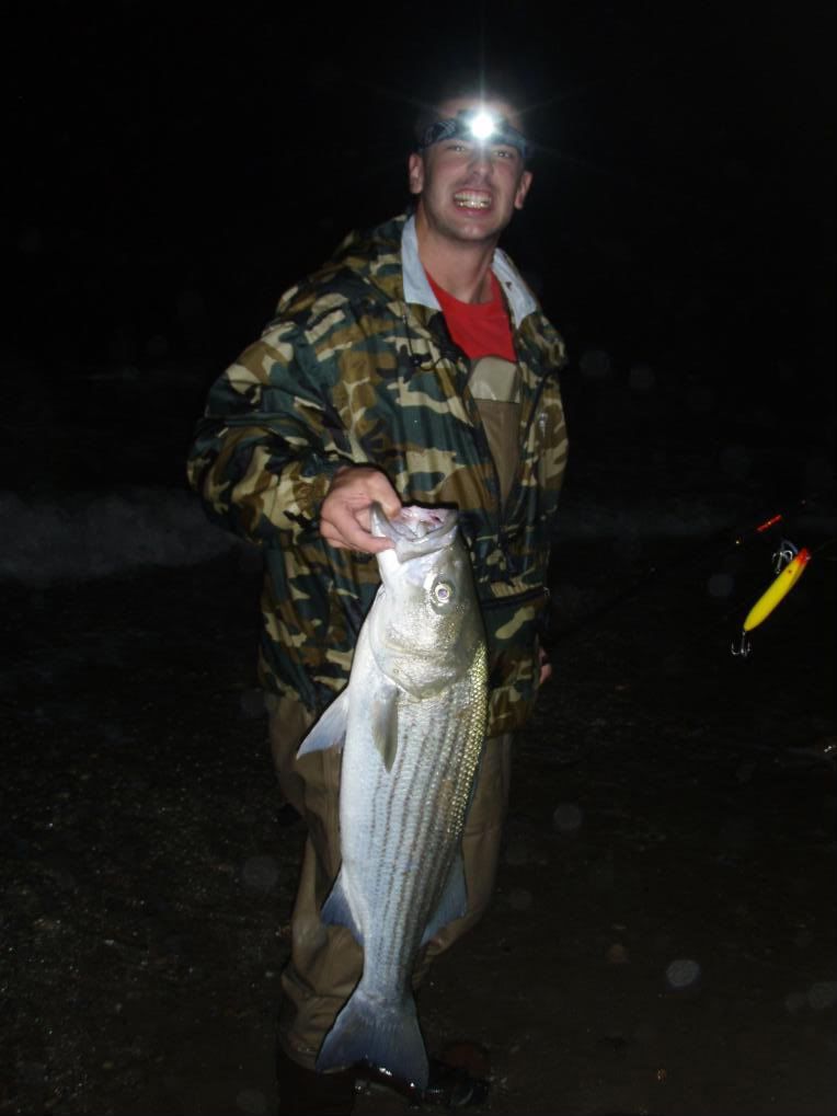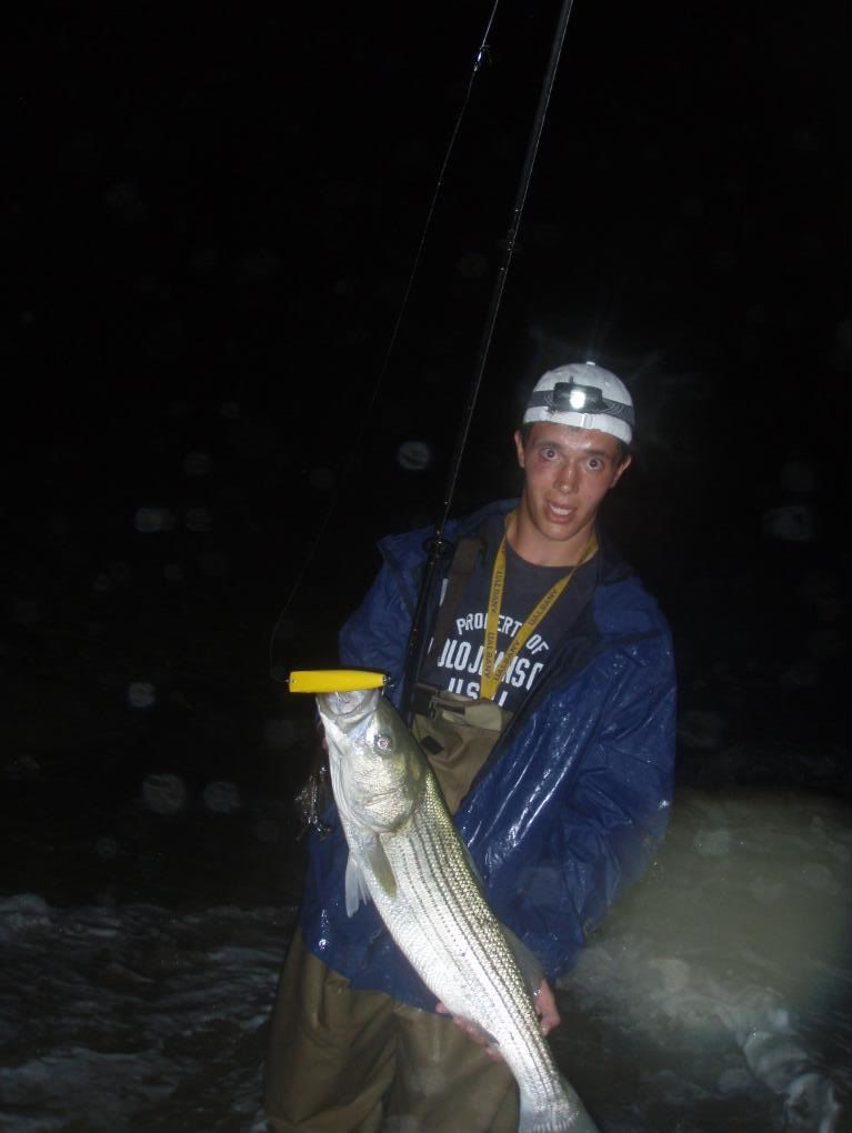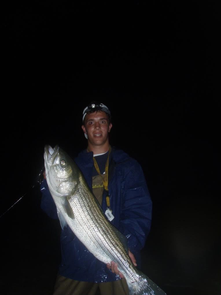 That just made the night one to remember. We had always come close to hitting the 30lb mark. I have caught many reds in the 25-28lb range and last year Jake got a 29lber. We had also previously hit stripers into the mid twenties and some possibly close to thirty but this was official. He did it in style too, a striped bass on a lure in the middle of the night in rough conditions. Congrats bro. Safely released as well.