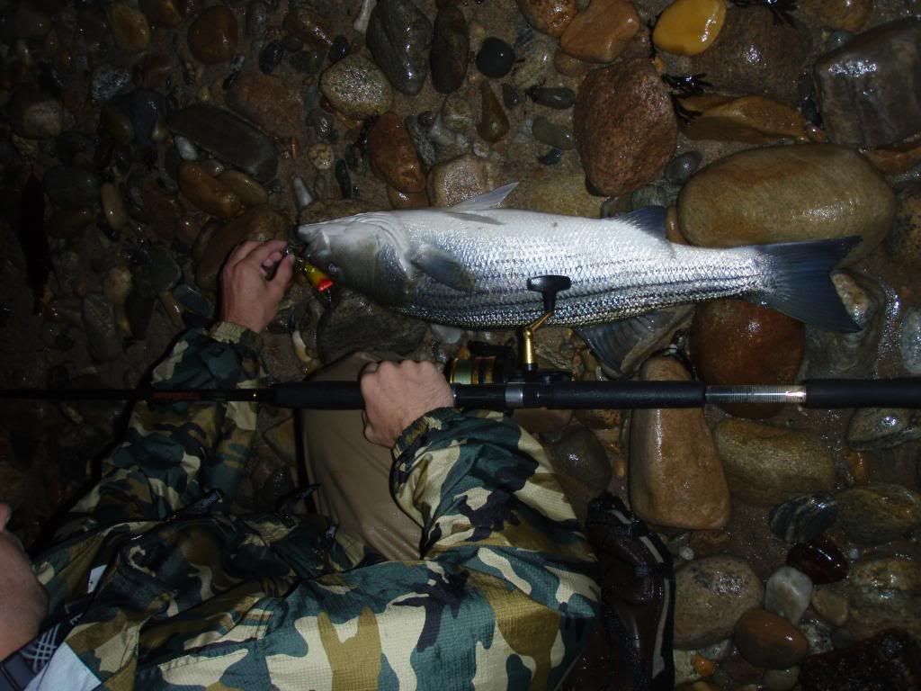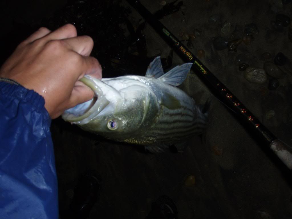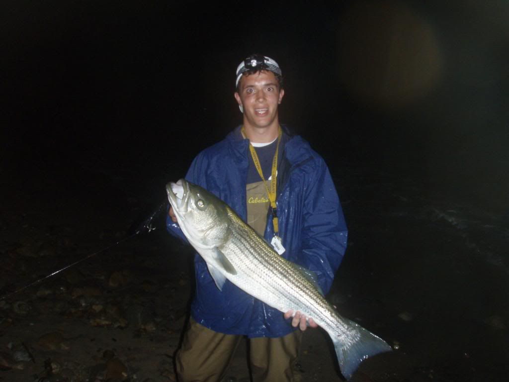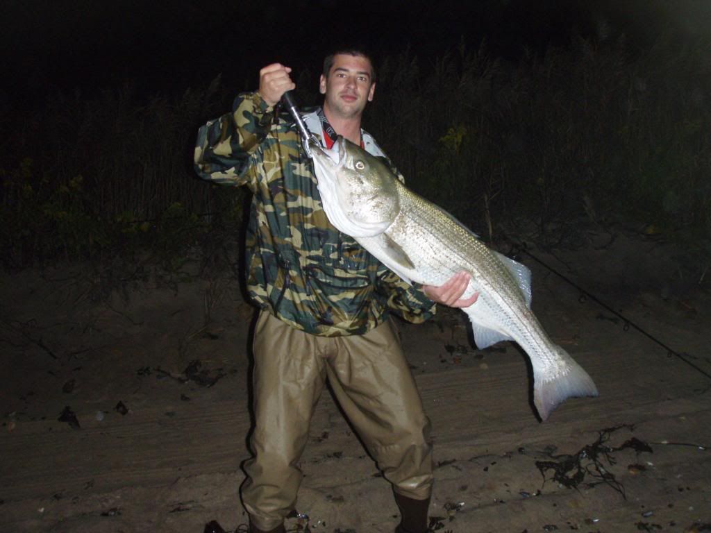 That just made the night one to remember. We had always come close to hitting the 30lb mark. I have caught many reds in the 25-28lb range and last year Jake got a 29lber. We had also previously hit stripers into the mid twenties and some possibly close to thirty but this was official. He did it in style too, a striped bass on a lure in the middle of the night in rough conditions. Congrats bro. Safely released as well.