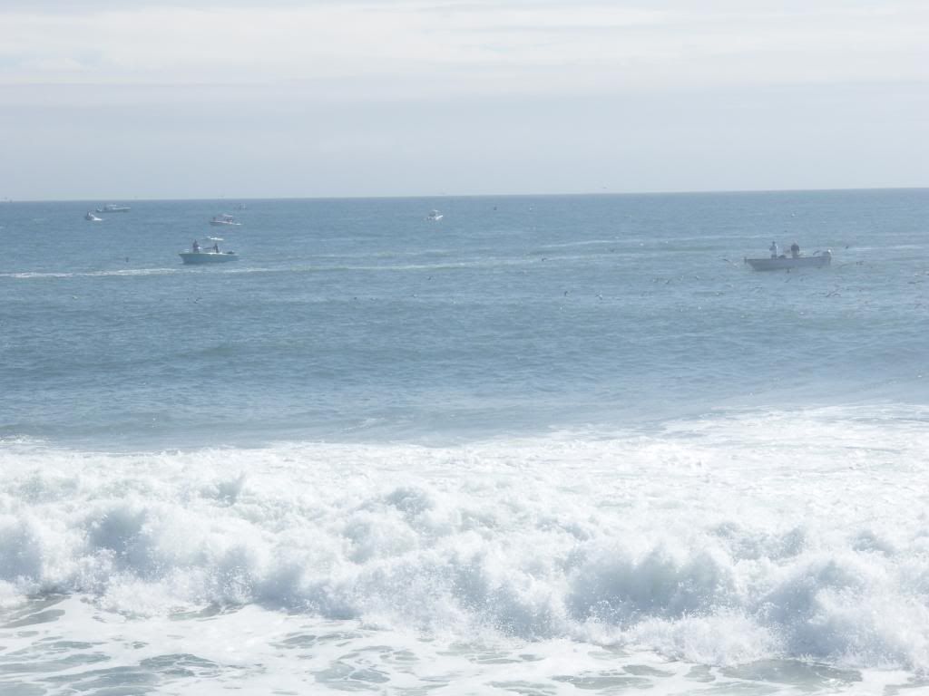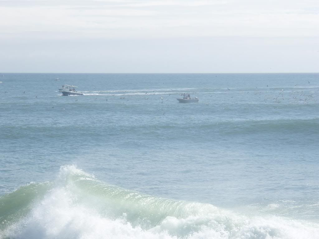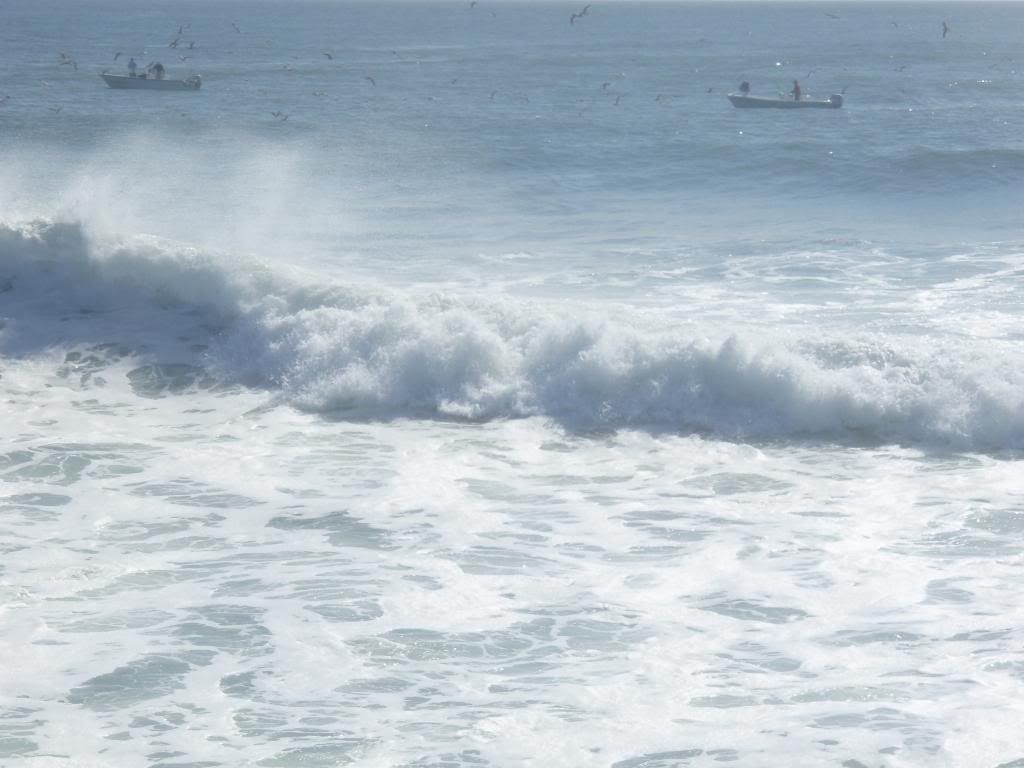 Moved over by the lighthouse where there was a school of birds working over bait and fish, no serious blitz ever materialized. There were some MONSTER waves.