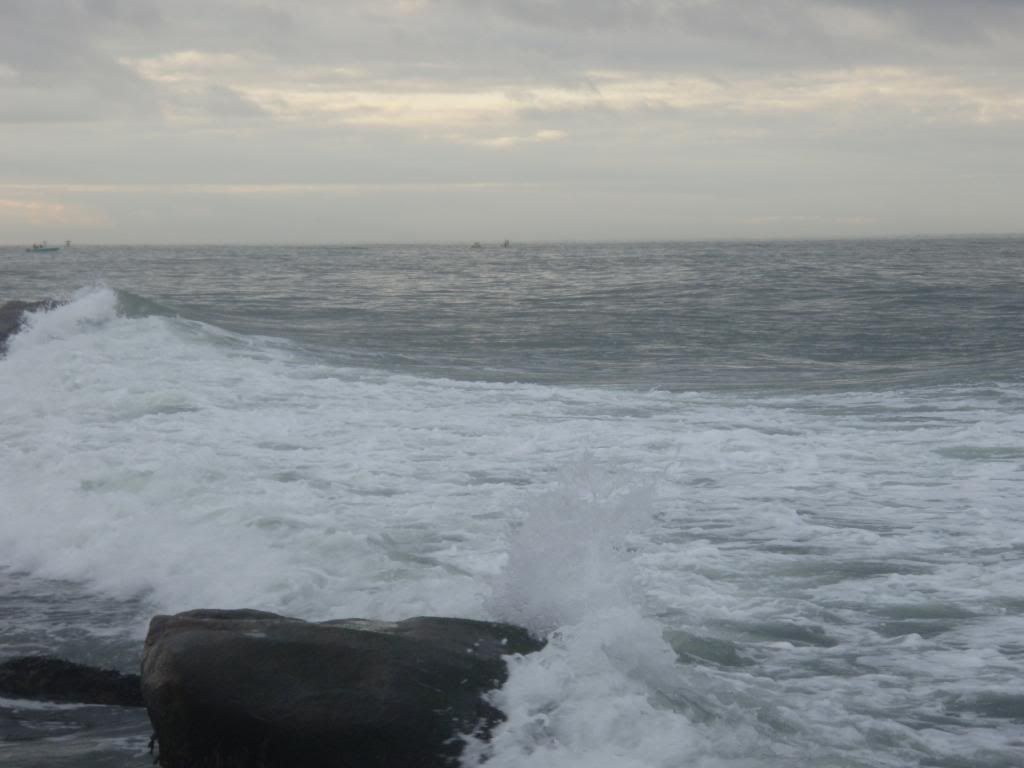 Jake managed to hook into two blues and i dropped one as well. Waves dont look all that fearsome in the previous pics but the surges of water and sets of 4-5 big waves also werent the times for me to be taking pictures. I was just trying to stay on my rock. Jake got dumped off his a dozen or so times with waves hitting us over waist high. Here are a few pictures i took trying to show the rough surf. The almost new moon currents had the water ripping.