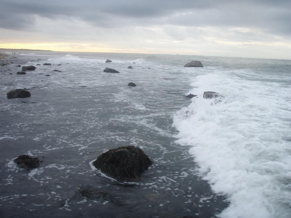 We ended up stopping fishing somewhere around noon after a good 5 hours of hard fishing and nothing to show for it. We drove back into town replenished our arsenals got some food and took a nice nap. Woke up around 3:30 and got our stuff ready. We were back at the rocks by 4:30 and the conditions laid down a lot and the rain stopped. Water look incredibly fishy.