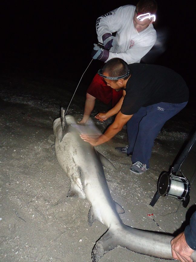 In the winter in this area as in many areas of Florida the shark fishing is hit or miss and on this night it was mostly miss until Doug got the first solid strike of the night at around 2 am as he and john were getting ready to pack it in.