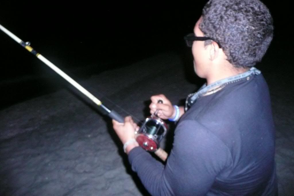 shortly after the 14/0 gets hit. i put it in free spool lock my drag and running man. i ran setting hook but was immediately flung backwards and almost knocking me in the sand. as the line peels off the 14/0 i tell my buddies to get camera and everything ready