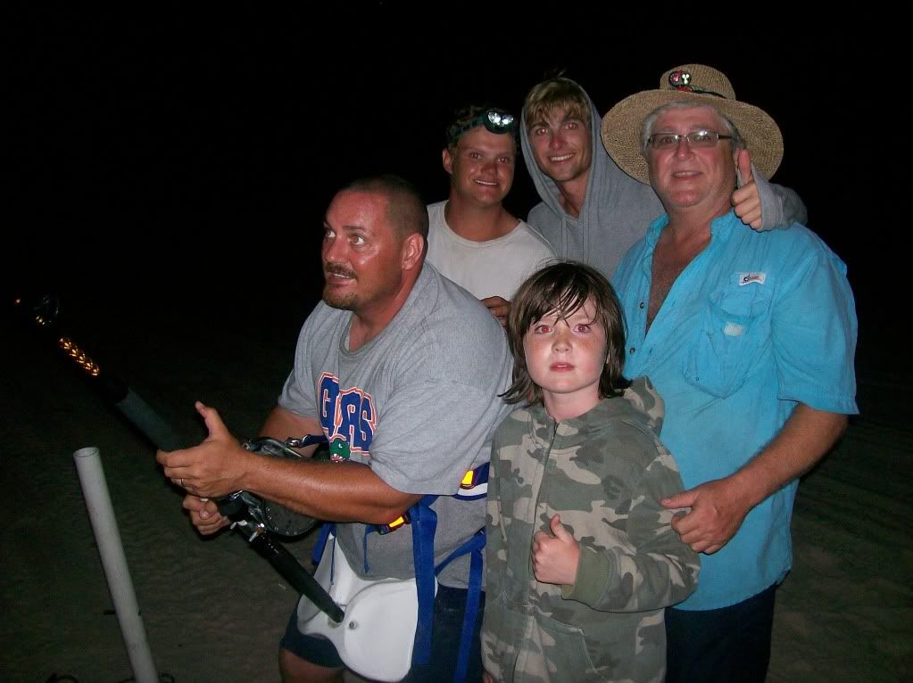 About 10PM Little John had to leave because he had to go to work the next morning. Like our last trip if you left your rod it was definitely going to get hit. The start of this trip was no different. About an hour or so after John left, his 9 gets a really strong run and Hunter get’s strapped in. After a stout battle a 5’11” black tip was beached. We were all so excited and high five’s were given all around.