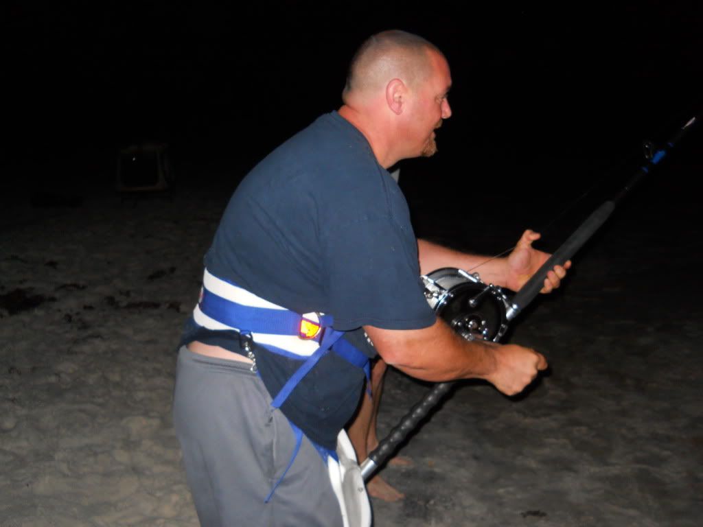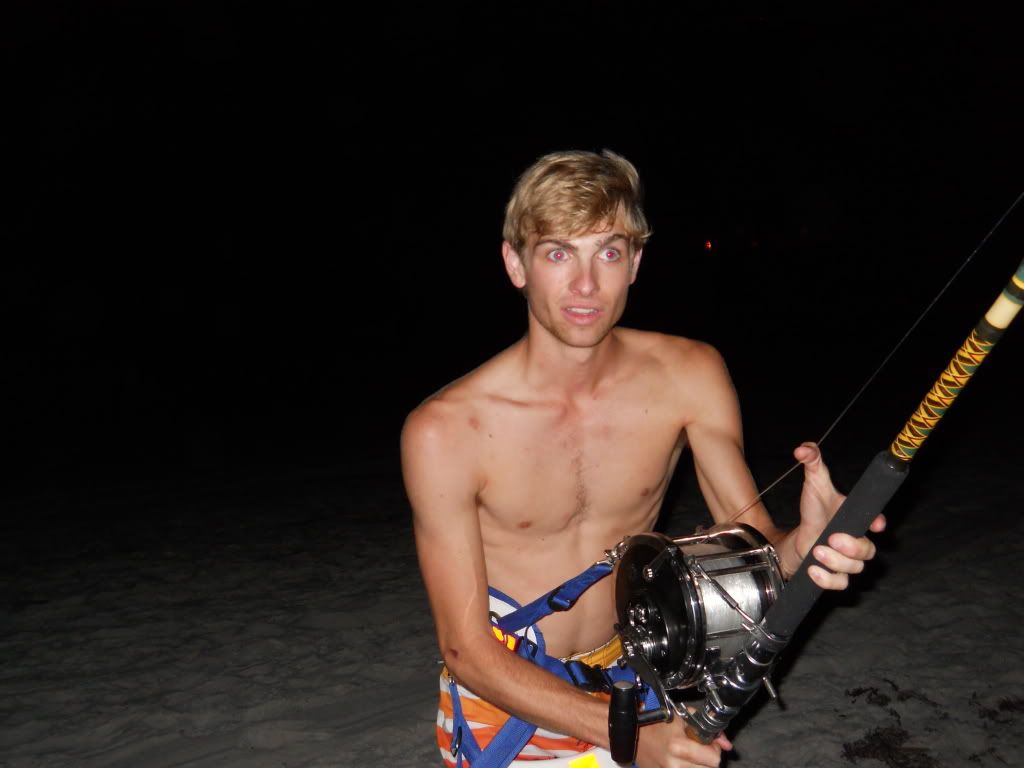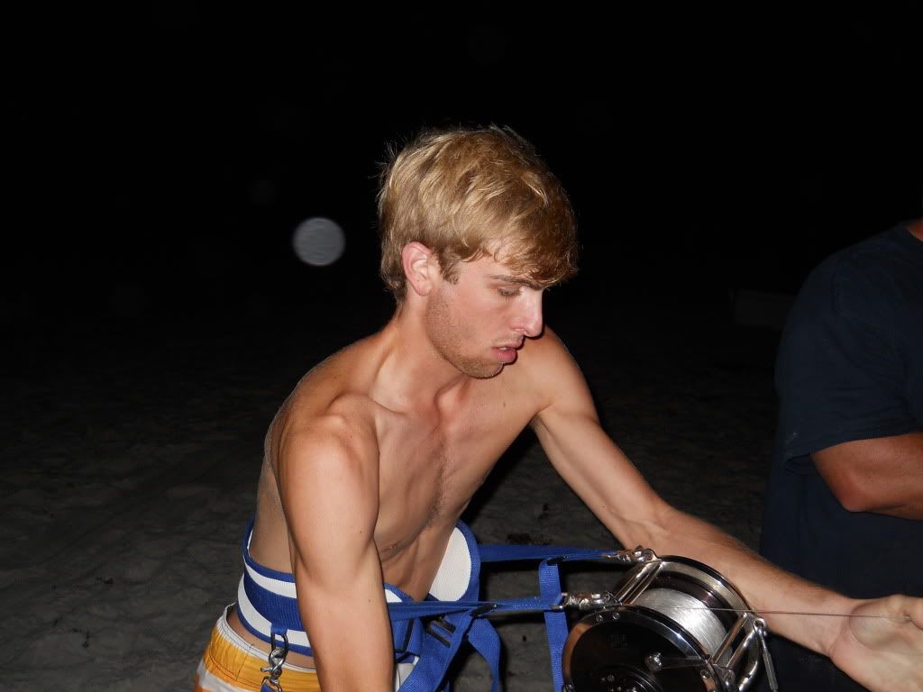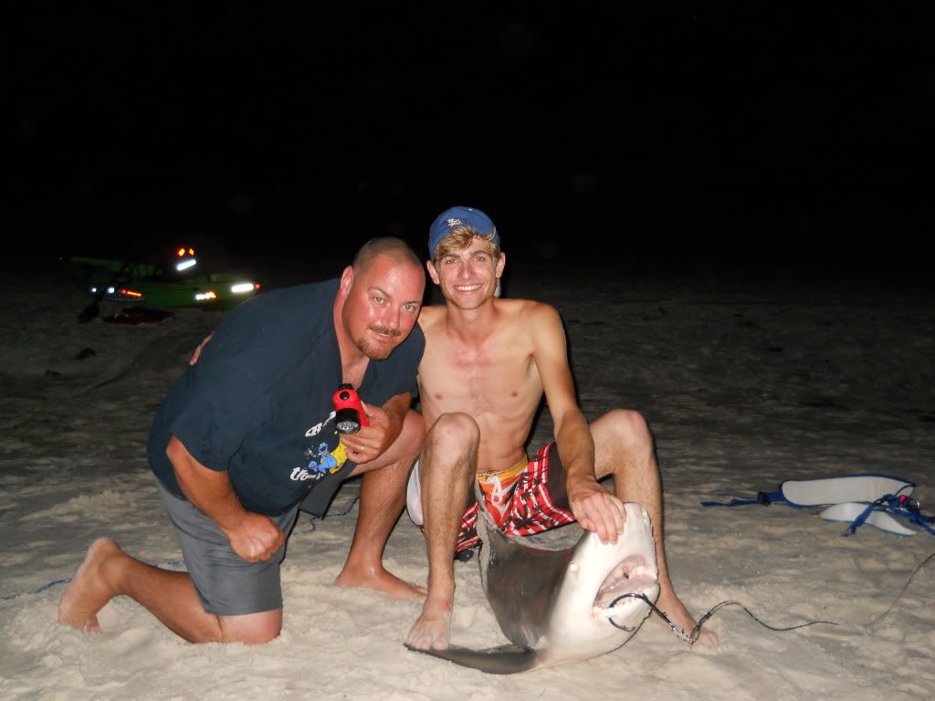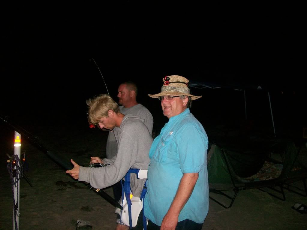 Because of the trip and the late hour we all decided to hit the tent cots. This night turned out to have very little sleep because of the constant runs we had throughout the night. About 12:30 the lucky 12 goes off and everybody is scrambling to get out of their tent cots. I don’t know how to describe when you are dead tired and passed out and then within minutes your body is just pumping adrelin-- it’s a crazy feeling. Hunter does the honors and pulls in a 5’11” black tip. hooking and taking some pictures we sent this fat little toad back to the depths of the dark ocean. Because we were so pumped up it took us a little while to settle down, then we all got back into our tent cots.