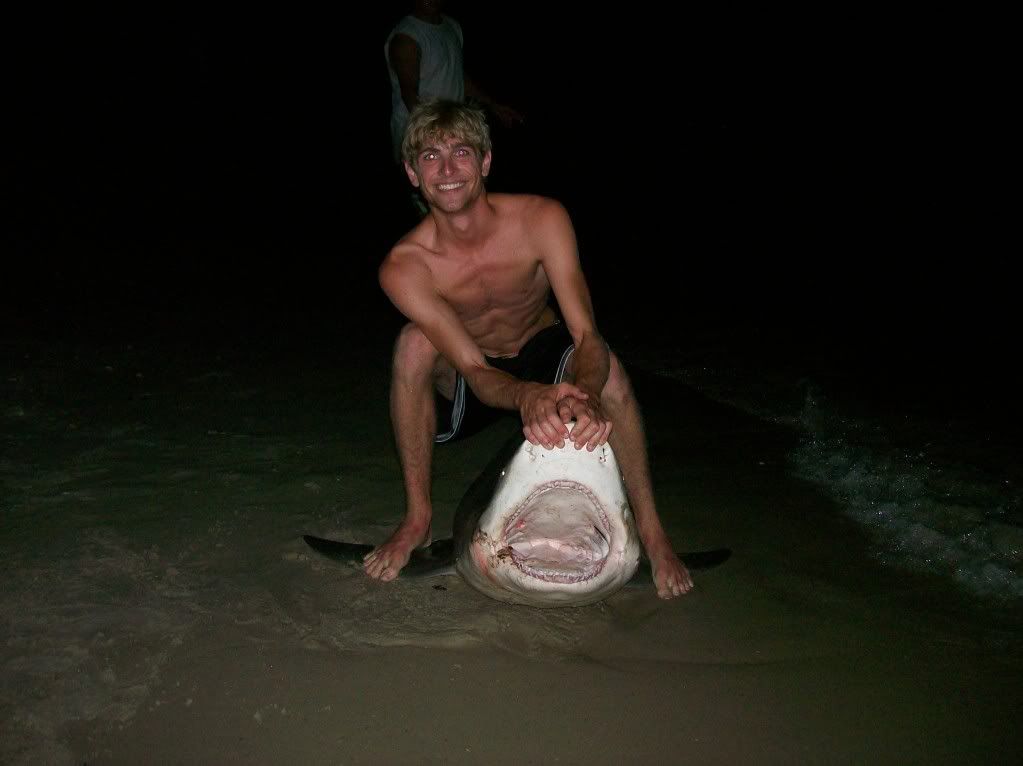 Actually the report needs to back up one night to littlejohn ‘s 8ft 3’’ lemon that he beached tue nite—that was his personal best and one hell of a shark—just a little taste of whats to come—john—what a way to get us started