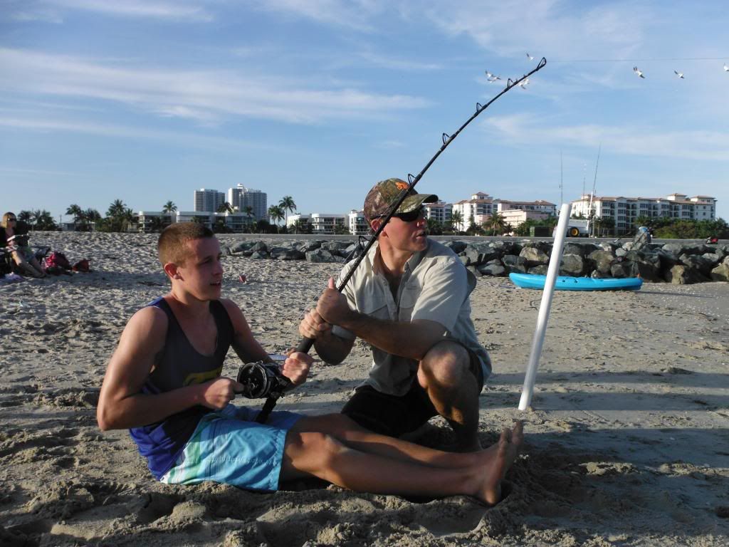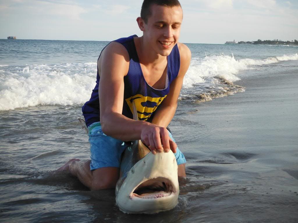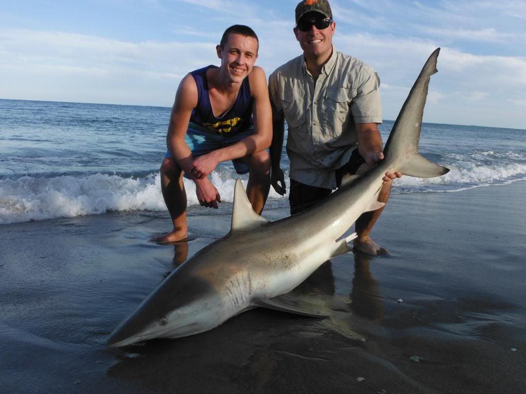 THEN MY OLDEST SON "LUKE" HOOKS INTO HIS FIRST SHARK FOR YEAR!!!