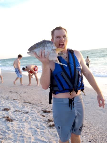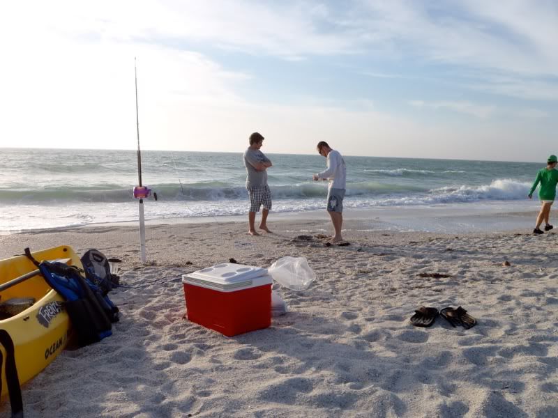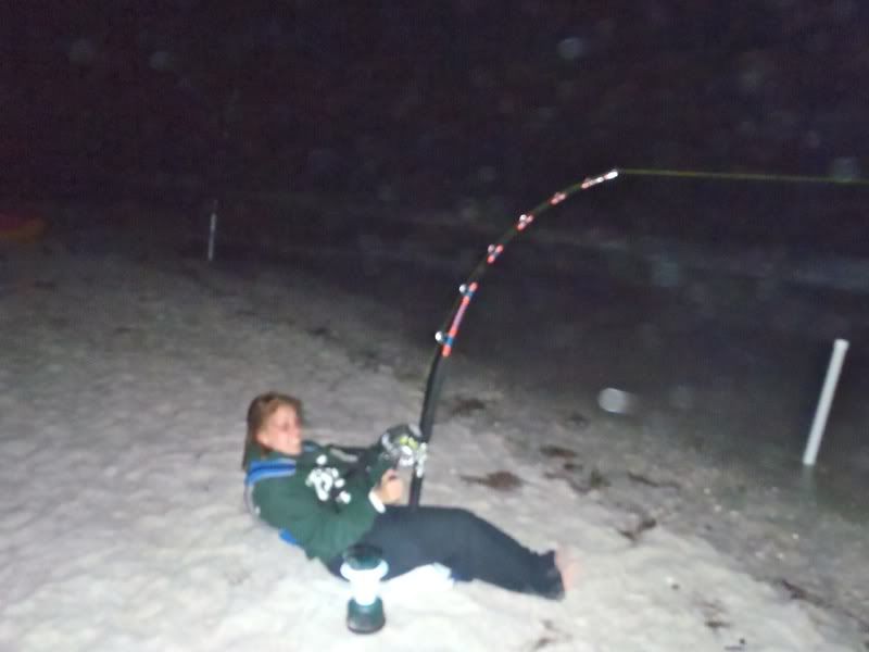 Bridget's rod went and we were convinced she had a fish, after a 15 minute fight, the bait and the rock were on the beach. Ver embarassing for us, especially since we recorded the entire thing.