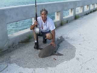 Me and my wife decided to take a few days off and decided to go to the keys, ended up fishing the seven mile bridge, on tuesday the 22nd we arrived at around 4:00 p.m just when the tide had changed, so I rigged the 10/0 and gave it to her to let some line out as I rigged another rod then she yell's COME HERE HURRY SOMETHING IS TAKING LINE so I run to her and set the hook just to find out later it is a nurse shark, I told her later why she did not set the hook like I showed her and she replyed it was the first strike and did not want to loose the oppertunity, We measured it at 57" and released it.